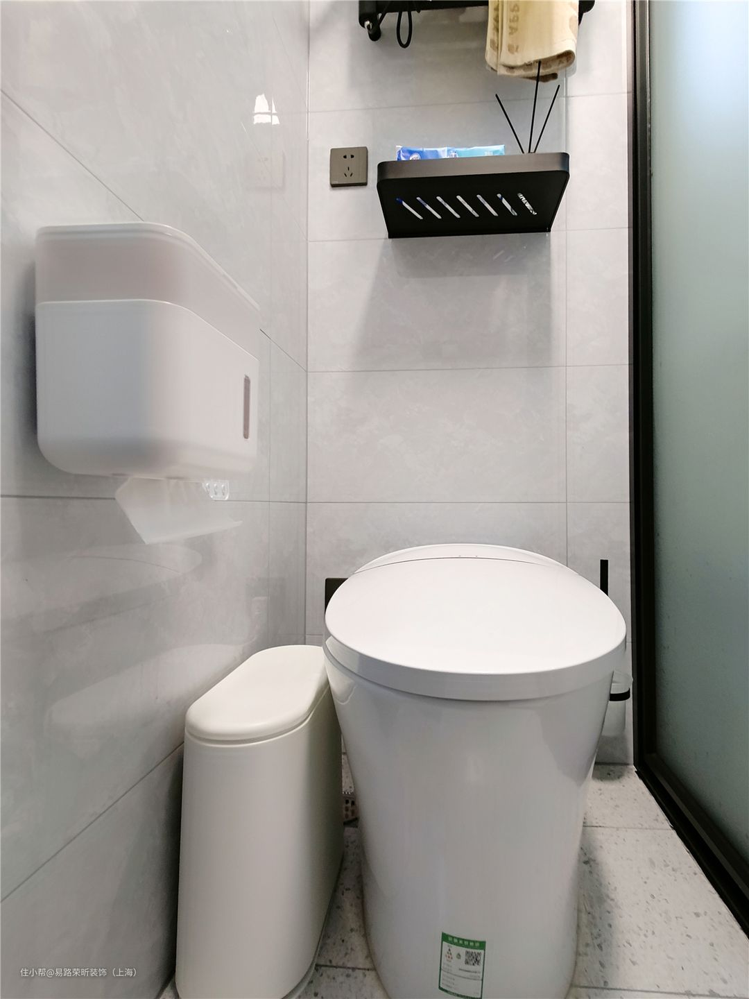 走廊对面就是卫生间了,设计功能丝毫不输!原本卫生间不足3㎡,储物空间基本没有,改造后实现了三分离,洗漱、如厕、洗澡都在独立空间,三个空间、三个功能使用互不影响,空间布局功能性划分清晰。