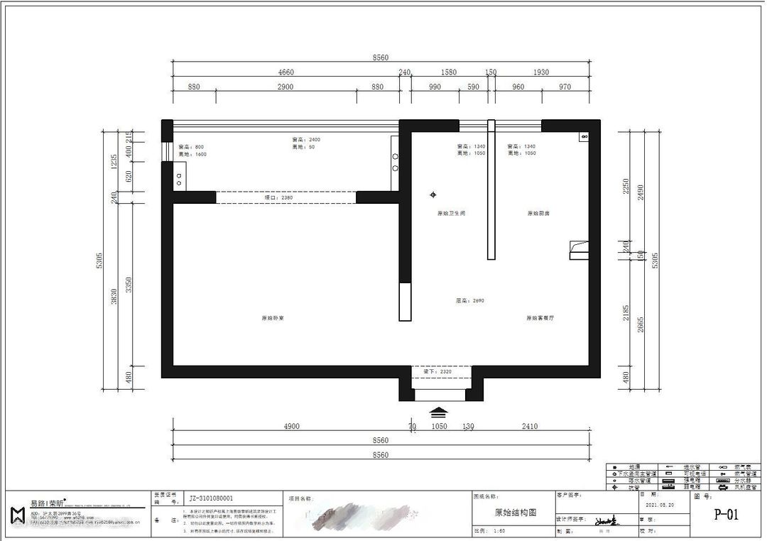 (一)原始户型 1.户型情况概述: 小户型设计的一大特点是面积小、需求多,不管老房、新房,原有布局很少有能满足主人家生活习惯的,很多人一听到小户型,就觉得可能会是一种局促的生活状态,十分拥挤,空间不够用,但是其实可以通过合理的优化布局来改变整体的视觉性,无论是大户型还是小户型。