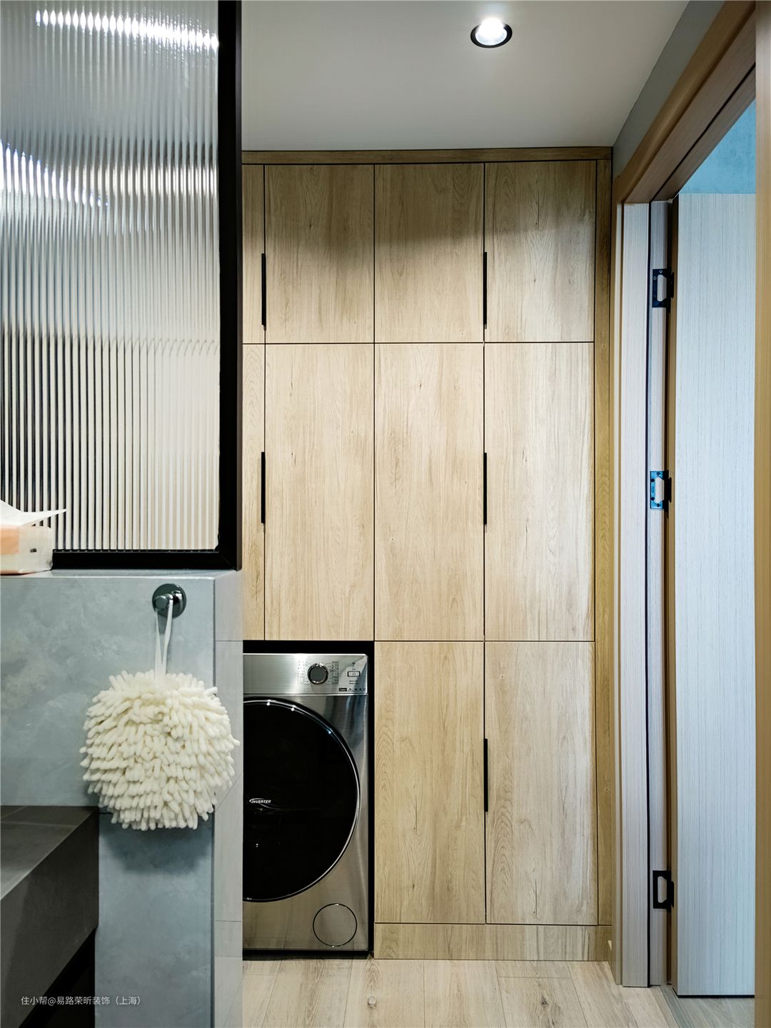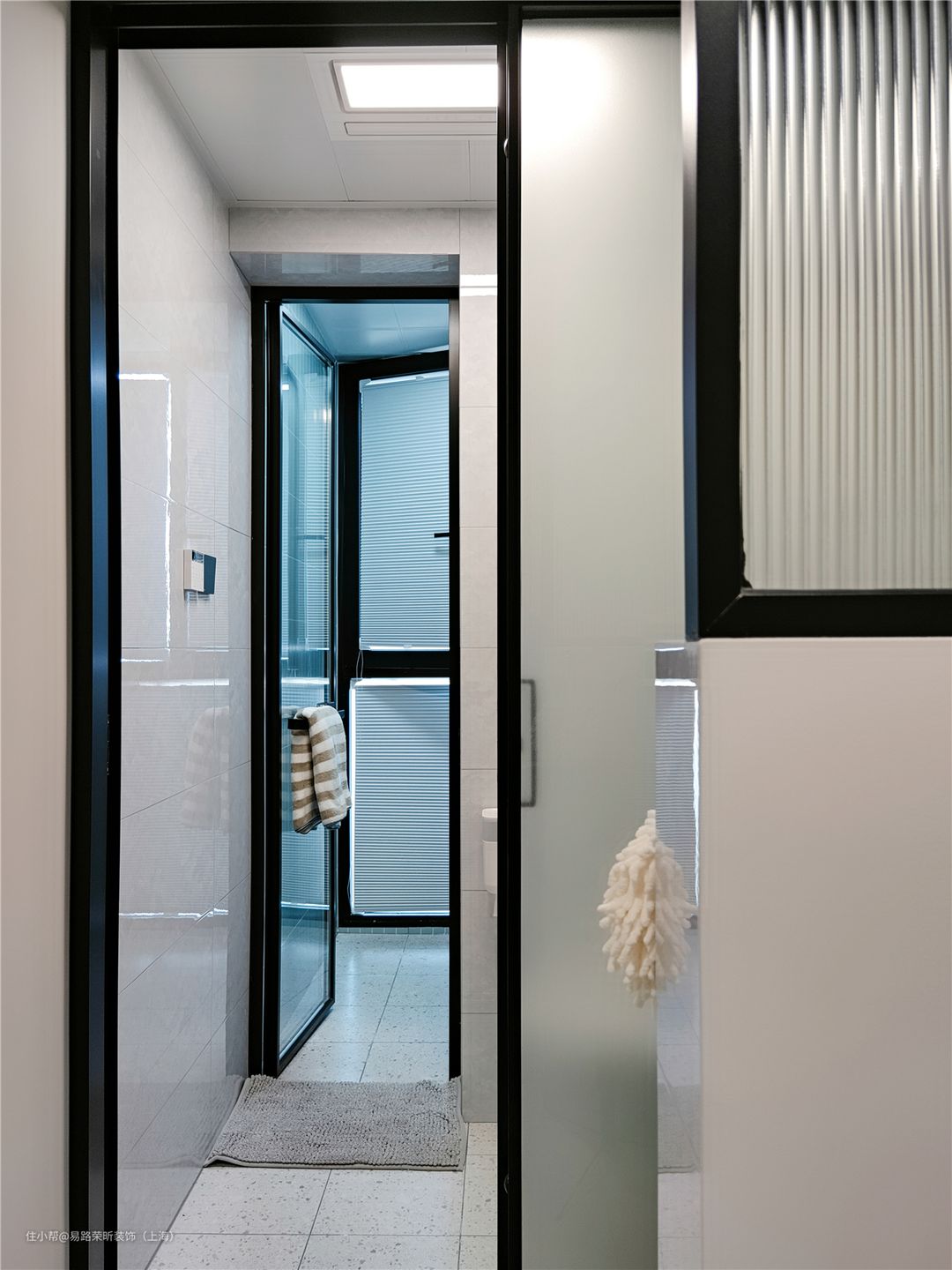 走廊对面就是卫生间了,设计功能丝毫不输!原本卫生间不足3㎡,储物空间基本没有,改造后实现了三分离,洗漱、如厕、洗澡都在独立空间,三个空间、三个功能使用互不影响,空间布局功能性划分清晰。