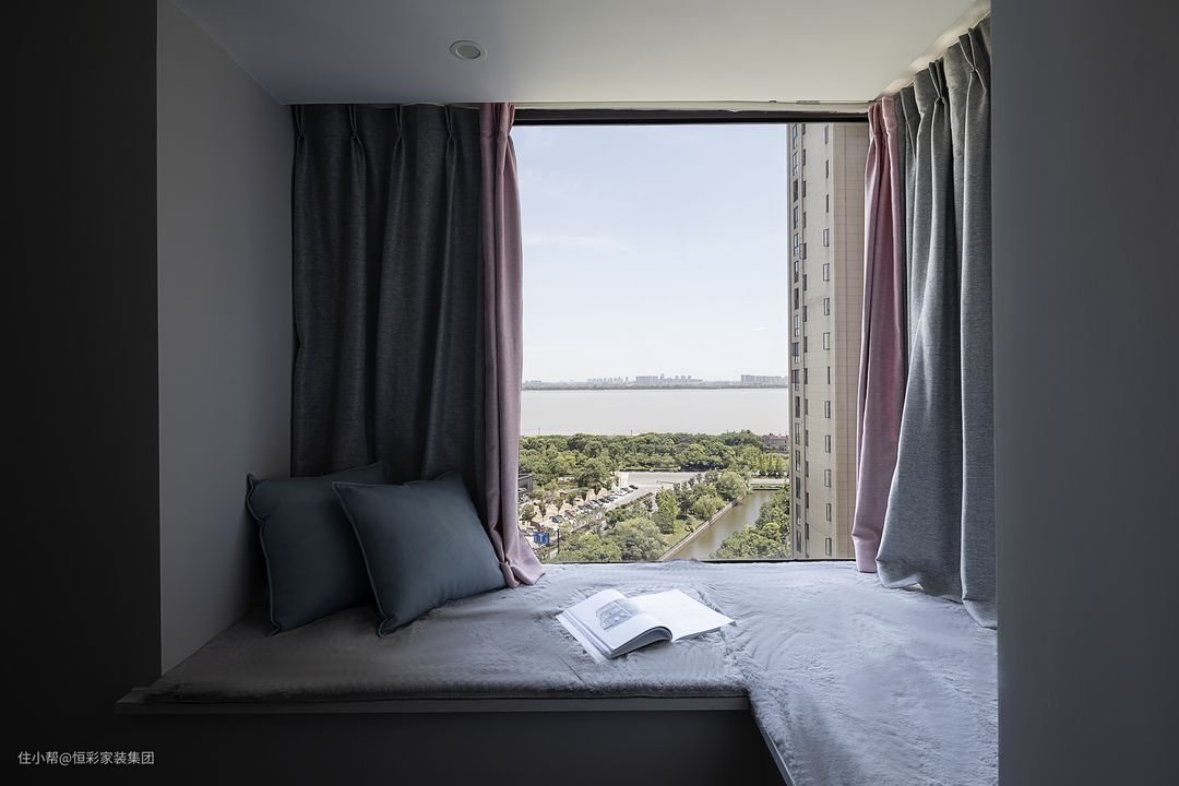 小飘窗保留,放上软垫、抱枕,闲暇之余,可以感受一下“面朝大海,春暖花开”般诗意生活。