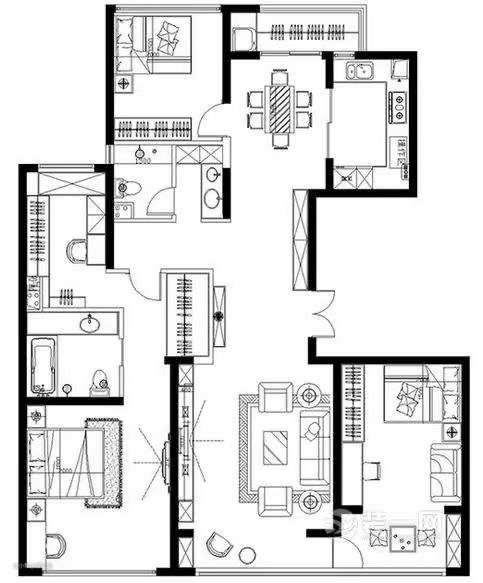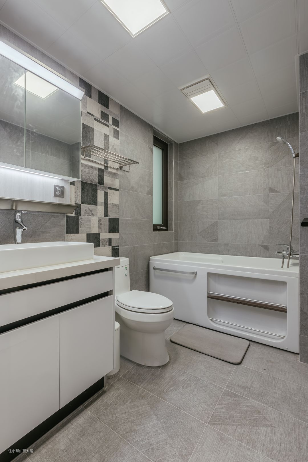 规划给卫生间的区域是一个长方形的空间,划分为三个区域,临靠窗户的区域放置浴缸,业主可在此尽情放松,享受泡澡时间。 入门处,洗漱区和座便器并列分布,充分利用了角落。浴室柜分区合理,简洁的白色板面缀饰黑色线条,视觉上干净利落。选择方形台上盆,具有收纳功能的智能浴室镜柜,自带灯带,功能性极强。 磨砂材质的玻璃,最大限度保护隐私的同时,还保证了采光,使得整个卫生间时刻保持清爽明亮,自然清新。 家作为可以尽情放松身心的场所,寄托了屋主所有的期待与想象,是最能凸显其生活态度和个人品味的地方。打造一个家,就是完成人生阶段性梦想的过程,因此更让人心动。