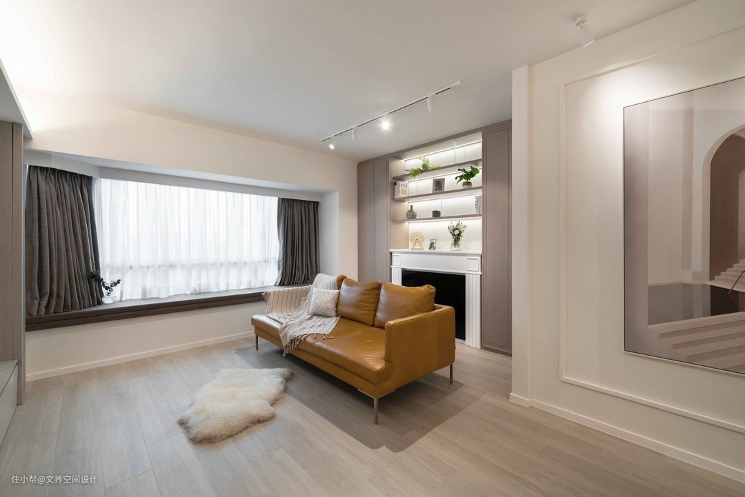 姜黄色的皮质沙发,在原木地板的衬托下,形成对比的同时也丰富了空间配色,让场域氛围更加的活泼和温暖。而一字型的造型,不占用太多面积的同时也不会有视觉上和动线上的阻碍感,让空间更加流畅~ #沙发 #飘窗设计 #原木地板 #软装搭配