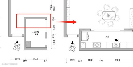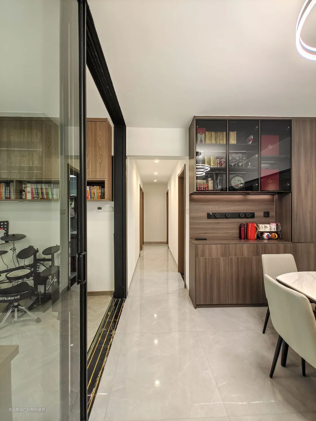 对原来不太合理的客餐厅空间进行了拆改优化 ,把原本比较狭小的餐厅空间扩宽,让玄关-餐厅-客厅三个空间相通且独立。