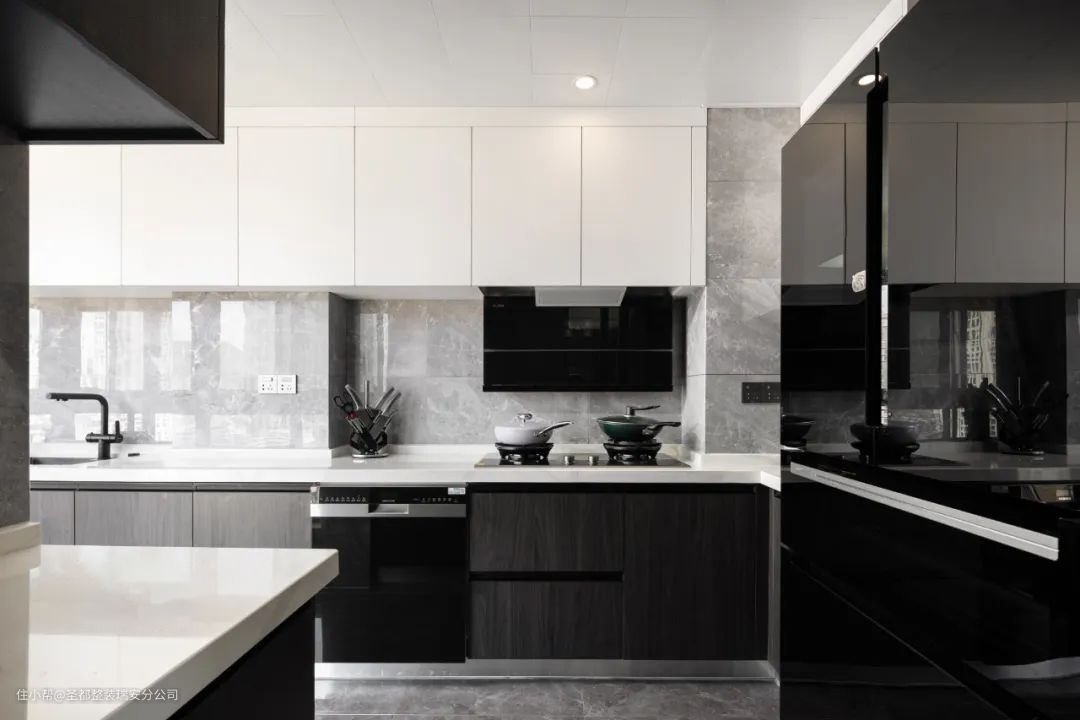 黑色拉丝不锈钢,格栅板,岩板的点缀,细节衔接之处彰显层次。