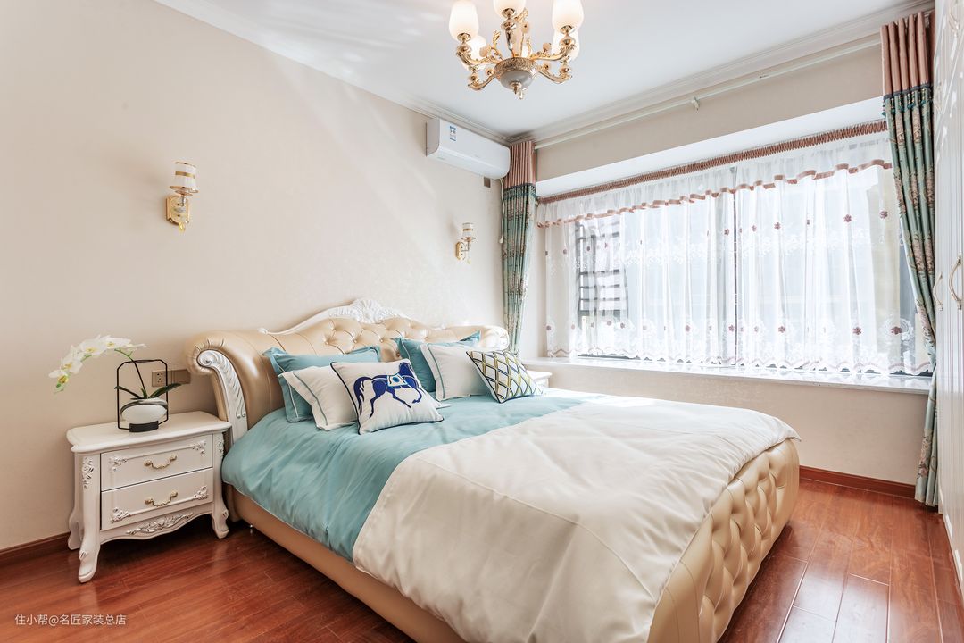 主卧温柔浪漫 宁静的氛围让心灵安放 欧式风格大床与床头柜精雕细琢 尽显女神范 牵引出居住者对优雅生活的追求