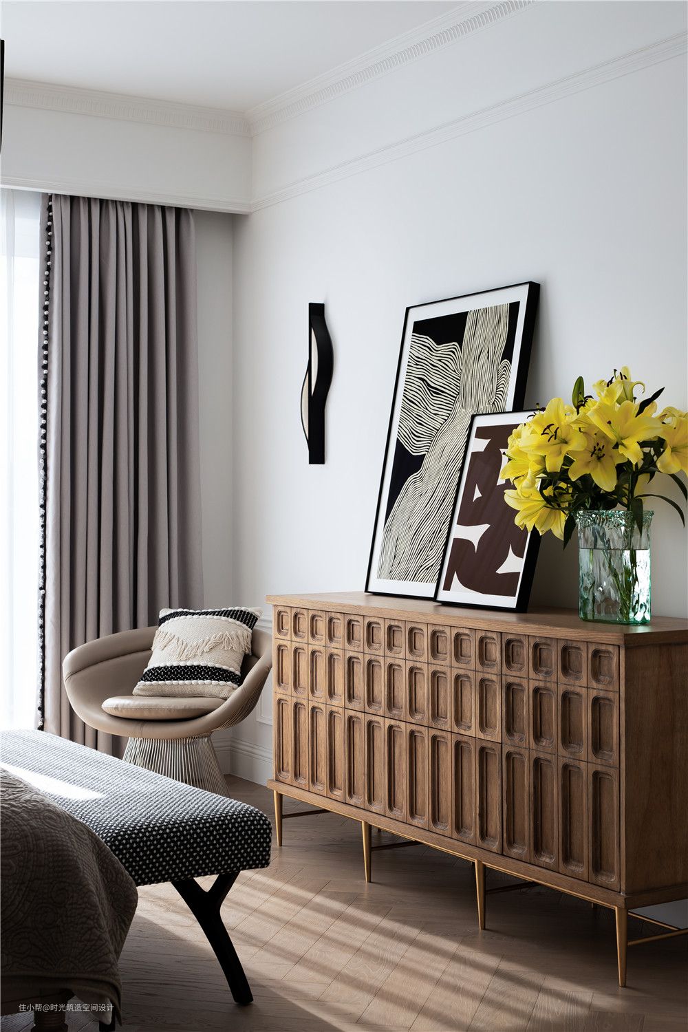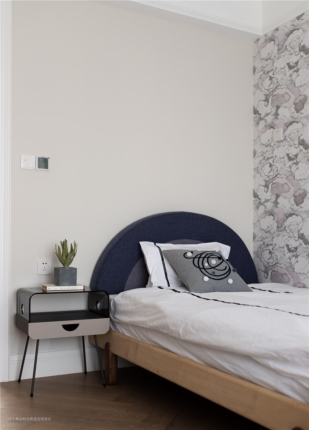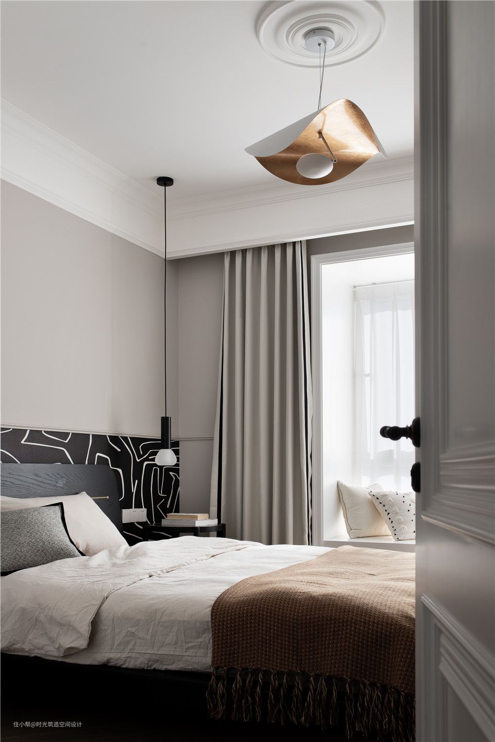 全屋的拉手采用各不相同的样式作为细节的点缀,并且利用原来的凸窗位置加了挂衣杆,兼具了视觉和功能性的双重输出。