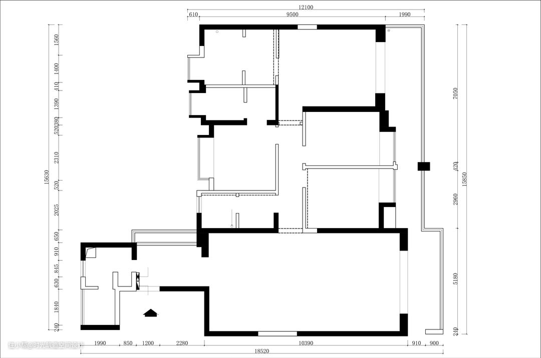 首先我们从结构上发现其存在的问题” ① 厨房太小 ② 厨房和餐厅离太远 ③ 主卧衣帽间尺度太小 ④ 走道过长,光线比较暗