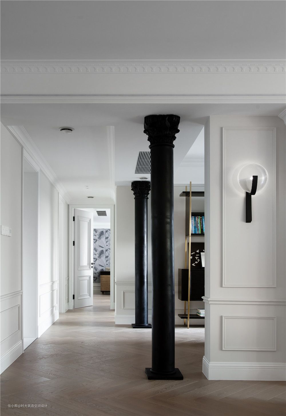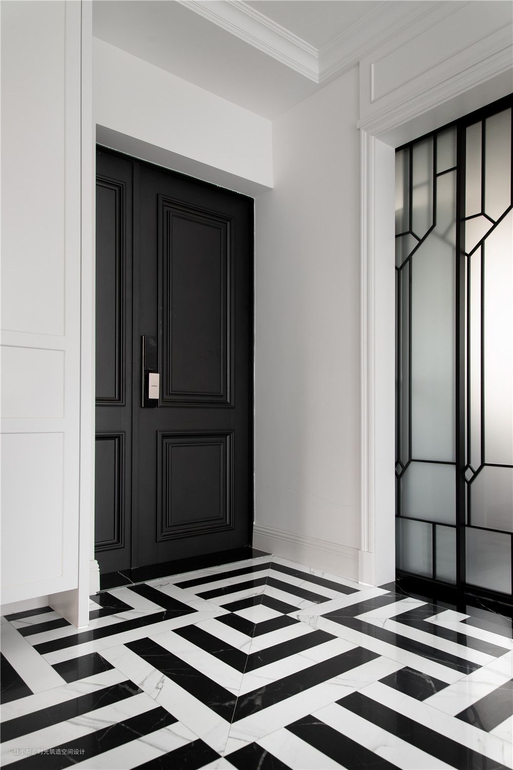 进门的入户处,采用最经典的黑白配色,作为整个空间色彩的起点。