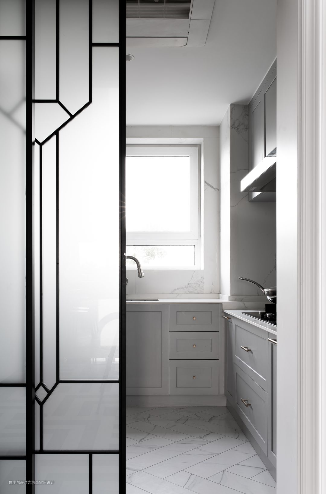 黑白灰色系的L型厨房干净简约,在这里为爱的人亲手做每一餐大抵就是人生最幸福的事情。