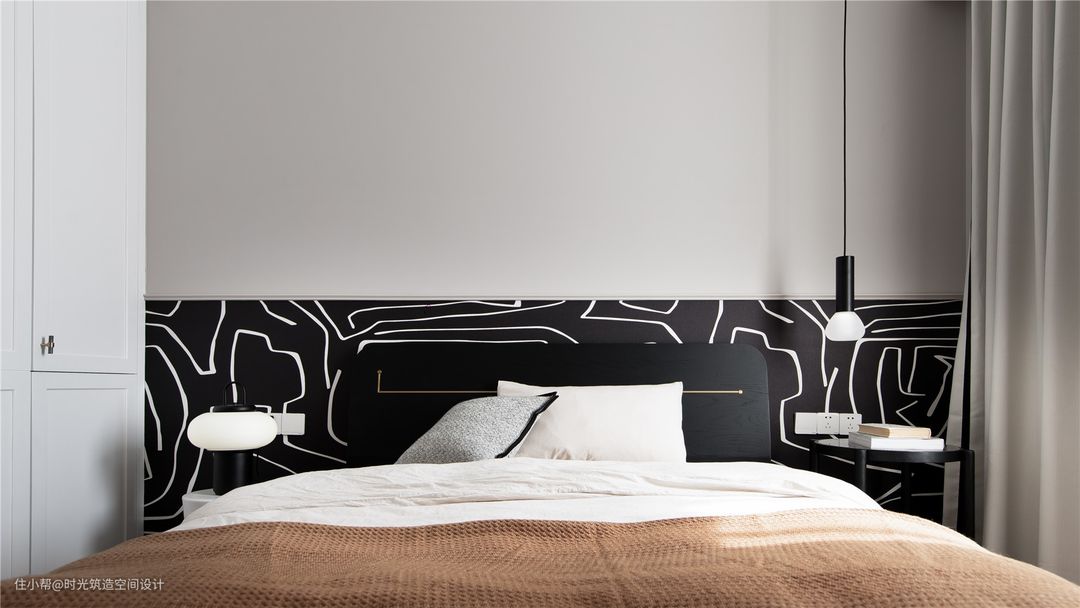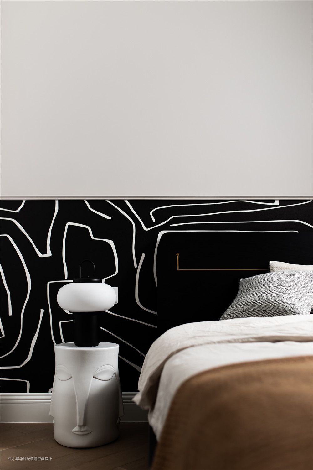 黑白线条的墙纸 艺术的墩子和吊灯 舒适的抱枕 每一件单品都在不大的空间里和谐的各司其职。
