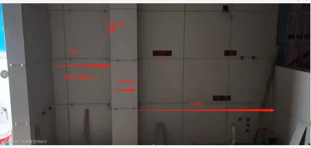 施工过程:厨房改造 注意结合现场及图纸尺寸,提前量好灶台等尺寸,以防后期购买出错