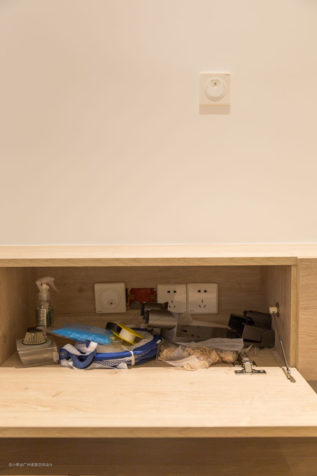 墙面预留孔位,电视机的连接线可全部收纳至下方,干净整洁又不影响美观。 #电视柜#电视