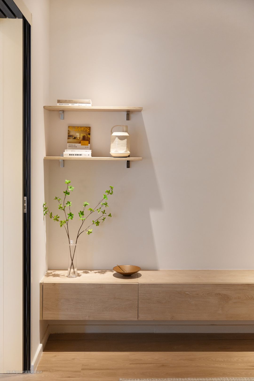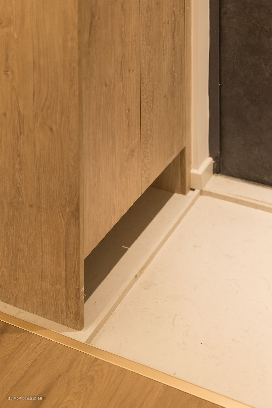 鞋柜底部预留空间,满足日常更换需求; 雨天鞋子脏了也可在这里处理,不影响木地板。 #鞋柜