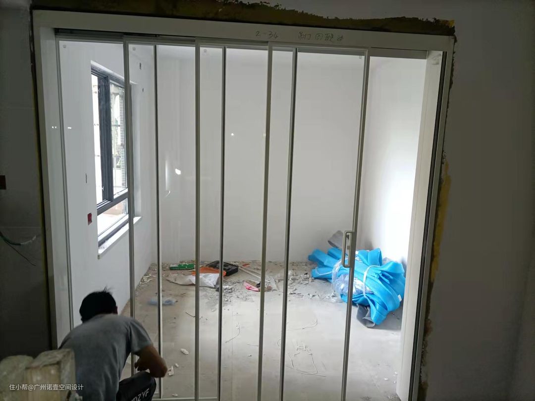 施工过程:安装卧室玻璃推拉门