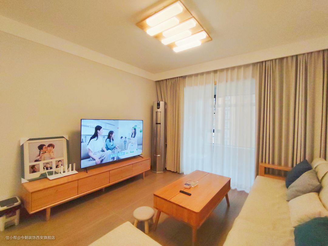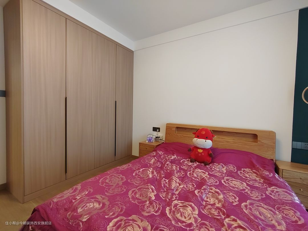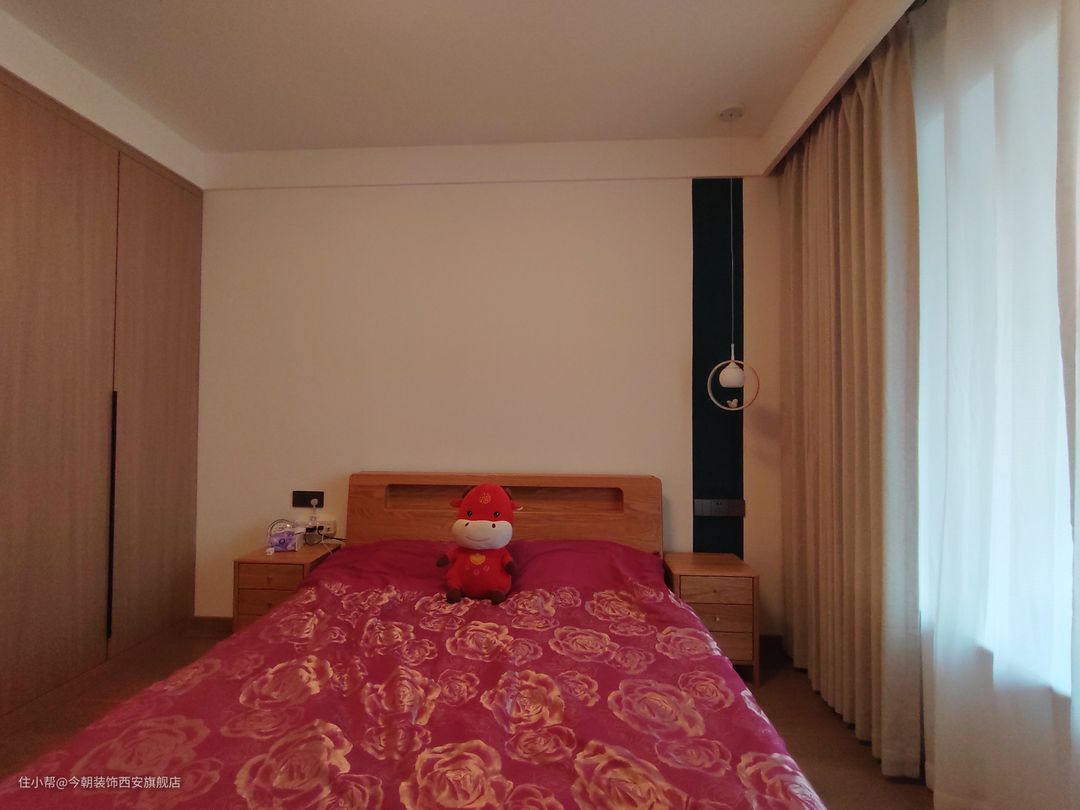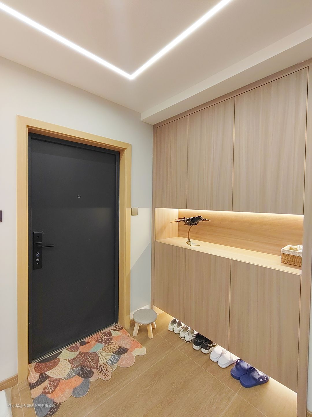 ◆装修小区:西安 · 劳动公园里 · 新房装修 ◆户型面积:115㎡三室两厅一厨一卫 ◆装修风格:日式风格 ◆设计理念:实用、适用、耐用 业主想要的: ◇喜欢轻松、温馨的氛围,家里硬装软装都要简单易打理 ◇生活动线合理,特别是厨房和卫生间高频使用的空间 ◇三口之家,有一个上小学的男孩,需要儿童房 ◇空间设计和软装搭配精巧、精简,不要太拥挤 ◇因为打算长期居住,色调要耐看,风格不易过时 设计要点: ◇整体用原木色调+白色调,简单的调色做调节,整个空间温馨但是不沉闷 ◇格局做微调,卧室不改动大的格局,细节做优化 ◇卫生间做干湿分离,做双洗漱台,避免早上使用冲突