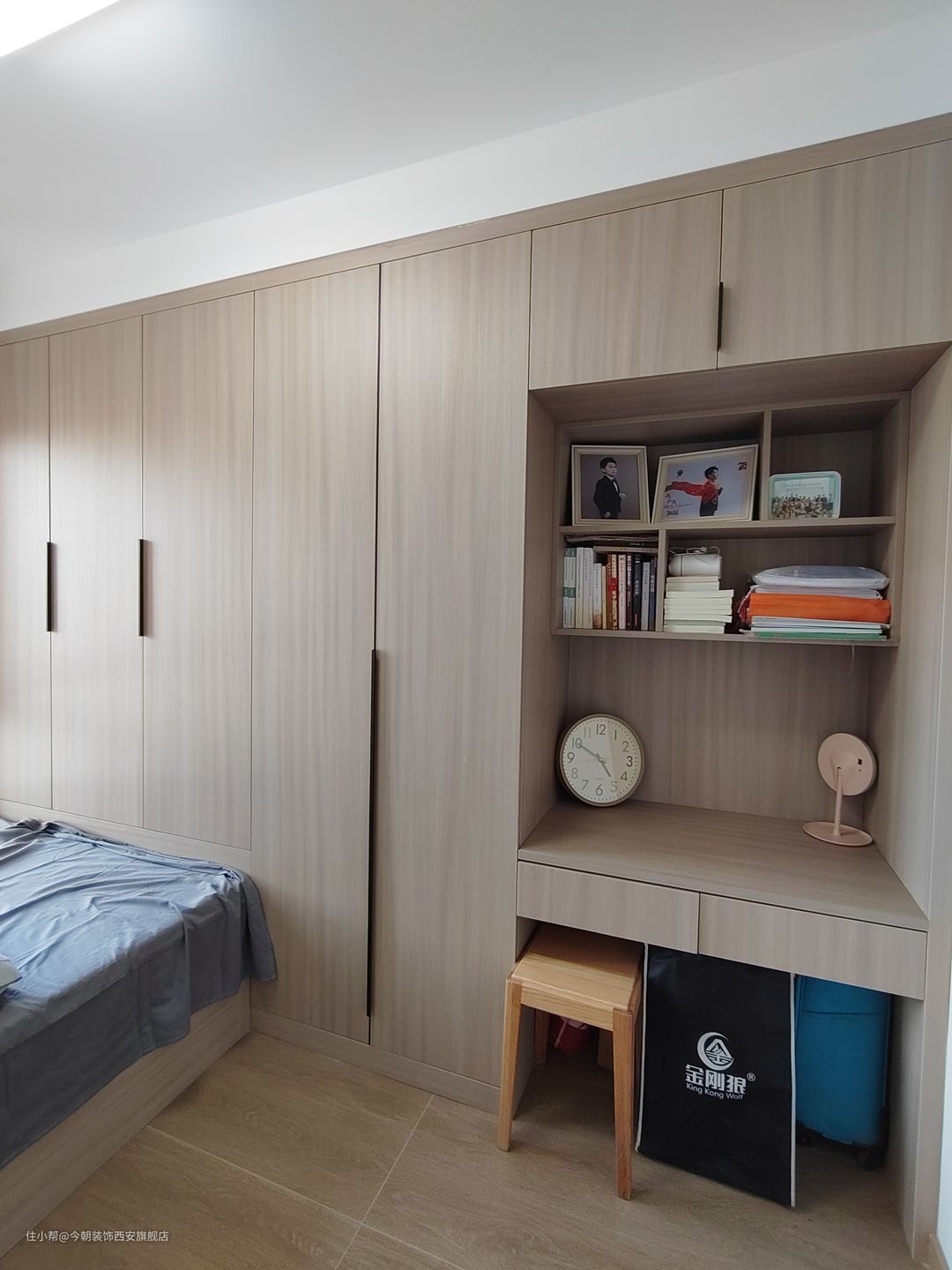 次卧做榻榻米和书桌的结合,平常可以作为老人房或是客房,让整个房子的储物空间增加了30%,方便实用