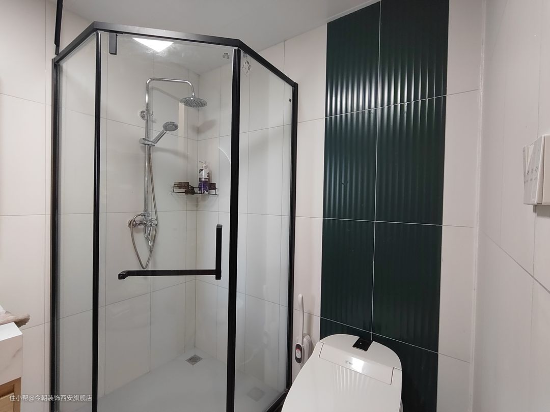 蓝色是充满活力和朝气的,也中和了原木色的单调感,成为了整个房子的点睛之笔,改动一卫的结构,设计为双面盆,避免了使用冲突的尴尬,卫生间内部做干湿分离,保证了使用方便和卫生条件,也是设计师的精巧心思了