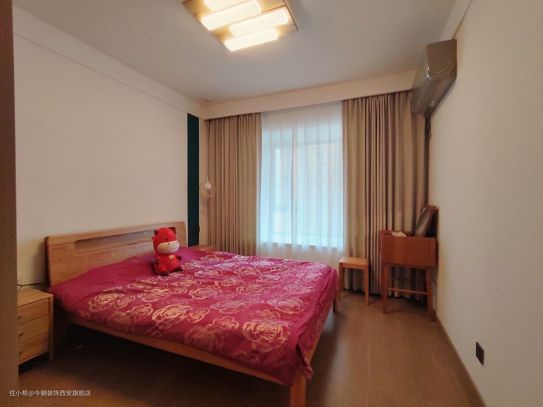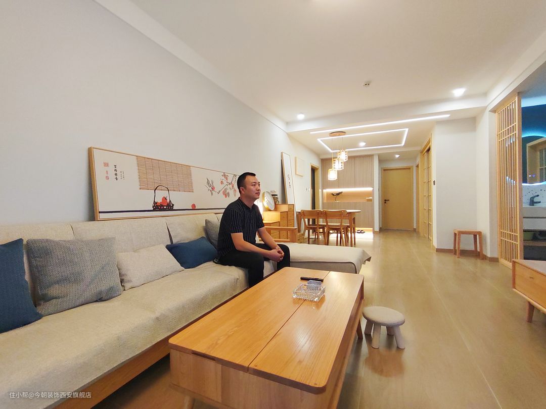 ◆装修小区:西安 · 劳动公园里 · 新房装修 ◆户型面积:115㎡三室两厅一厨一卫 ◆装修风格:日式风格 ◆设计理念:实用、适用、耐用 业主想要的: ◇喜欢轻松、温馨的氛围,家里硬装软装都要简单易打理 ◇生活动线合理,特别是厨房和卫生间高频使用的空间 ◇三口之家,有一个上小学的男孩,需要儿童房 ◇空间设计和软装搭配精巧、精简,不要太拥挤 ◇因为打算长期居住,色调要耐看,风格不易过时 设计要点: ◇整体用原木色调+白色调,简单的调色做调节,整个空间温馨但是不沉闷 ◇格局做微调,卧室不改动大的格局,细节做优化 ◇卫生间做干湿分离,做双洗漱台,避免早上使用冲突