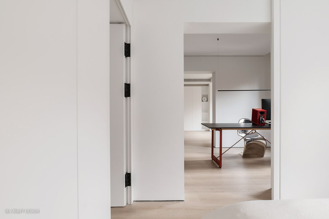 我们整体的改造思路还是将空间尽可能地打开,特别是公区,让它尽可能地开敞通透,私区根据小两口的未来规划,就是他们和孩子,所以呢就将居住区分为两部分,一部分给父母用,一部分留给未来的宝宝。 整套案子最大的改造亮点,其实是走廊空间的利用,我们将走廊空间纳入主卧套间,一部分做了步入式衣帽间,另一部分则做了主卫。这样的空间改造,被我们小伙伴说成:空间利用哪家强,中国上海找费弗,哈哈哈哈哈!
