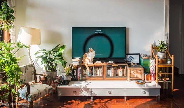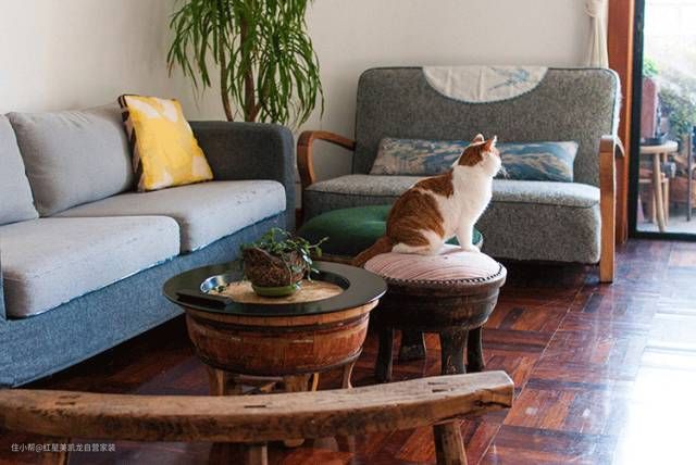 Roxanne喜欢旅行,家中摆了很多到处走走停停搜罗来的好玩物件。还有很多经过改造和翻新的旧家具,它们来历复杂,有的是捡的,从别人的三轮车上“硬拦下来的”,有的是去国外的vintage集市里淘来的。 沙发和座垫上常有猫抓的痕迹让她很无奈,但总的来说,在她家,有生命的和有故事的共处一室,奇异地和谐而安宁。