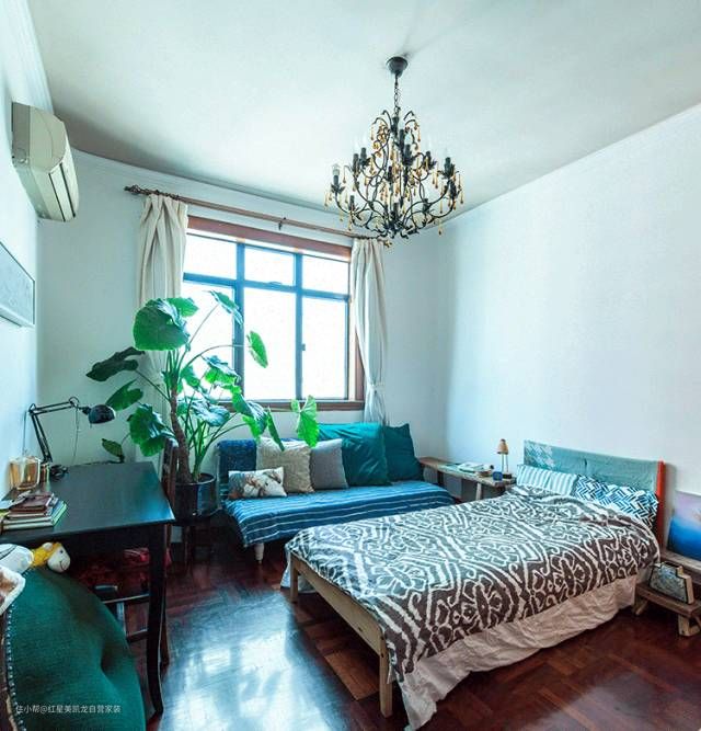 你以为卧室就没有植物“入侵”了吗?太小看它们啦。不过卧室确实不宜摆放太多植物,只在窗台边布置了少许。