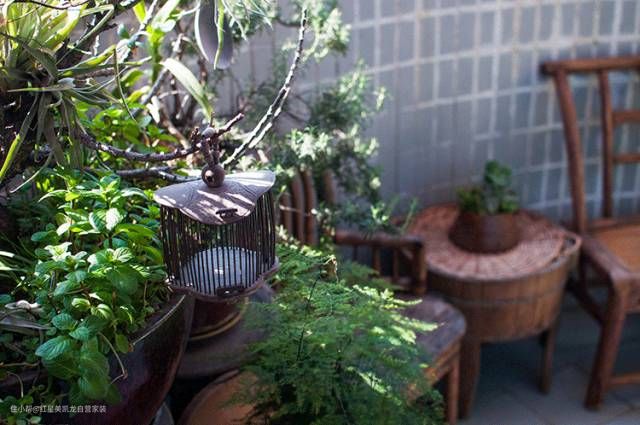 弧形的阳台扩大了面积,除了地面的盆栽,还可以种一些“高个子”植物,小灌木,营造错落的层次感。