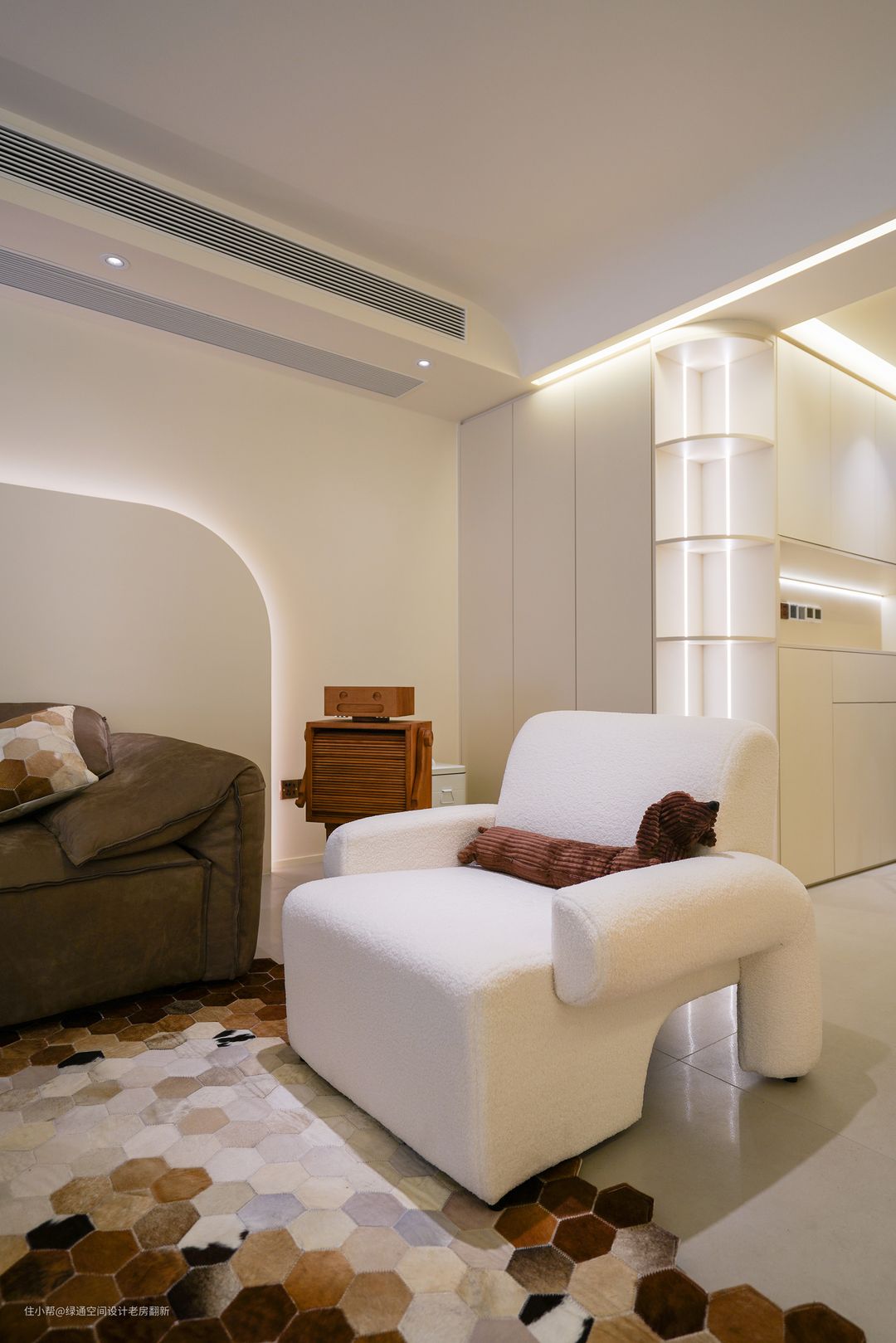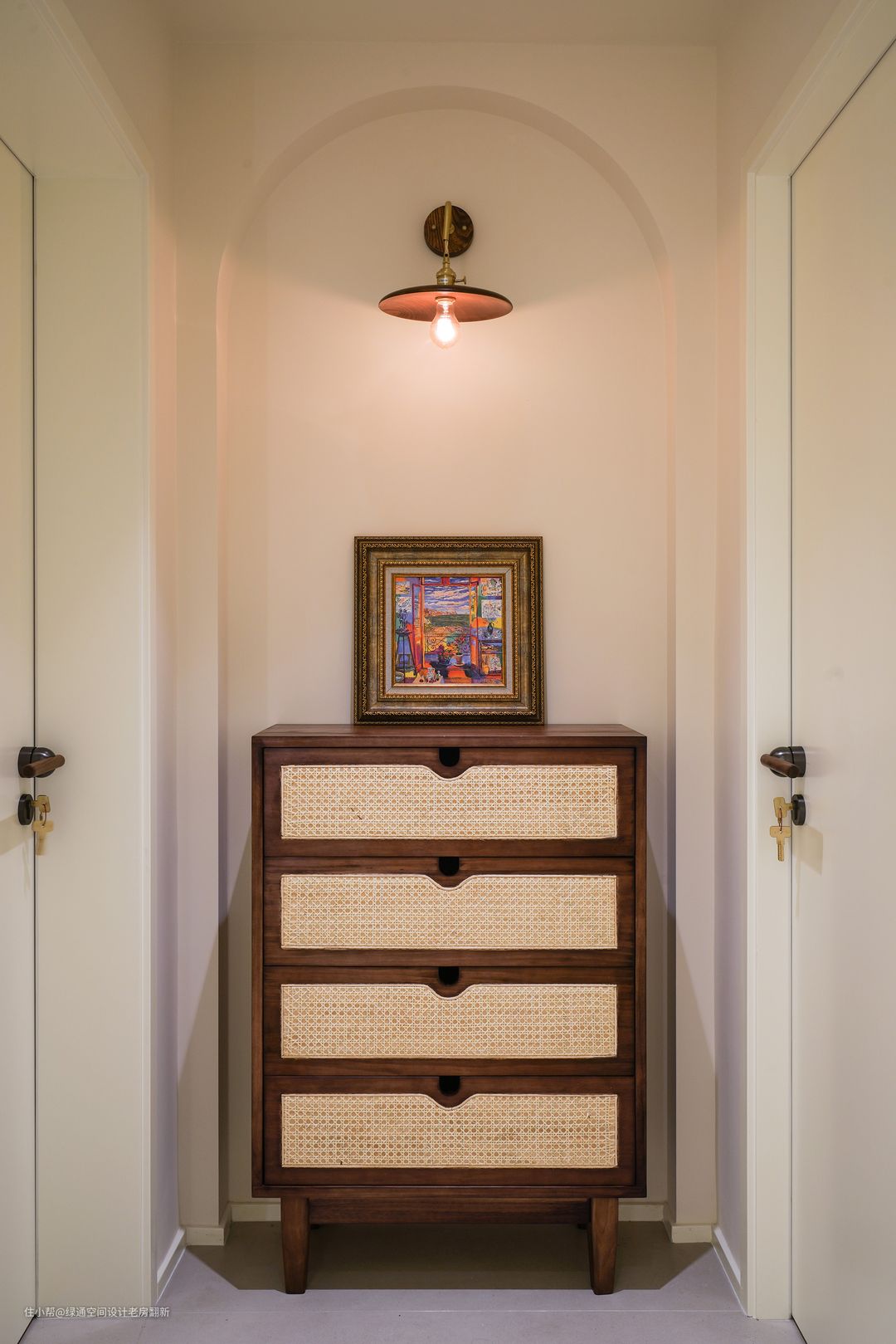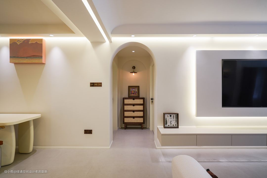 过道拱形门+复古装饰,奶油风展示的淋漓尽致~