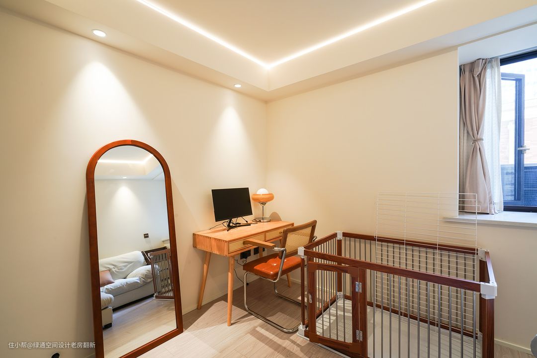 次卧作为书房和临时客房,简洁舒适,与整体统一的色调暖暖的很温馨。