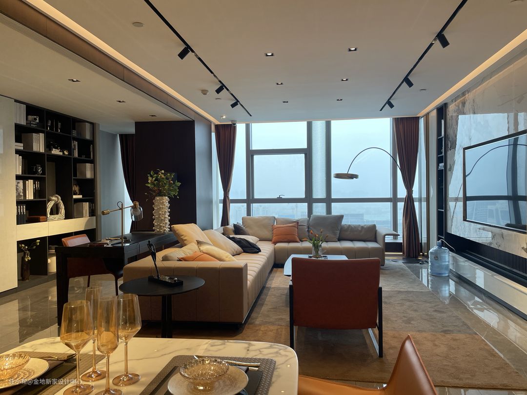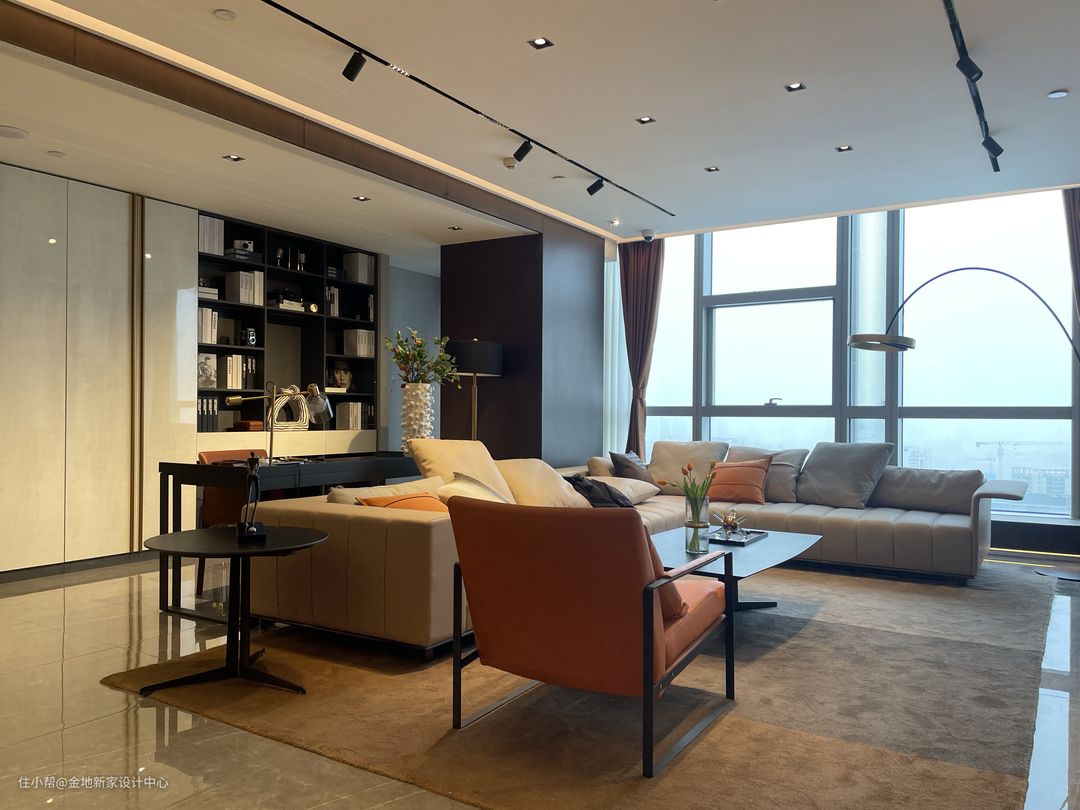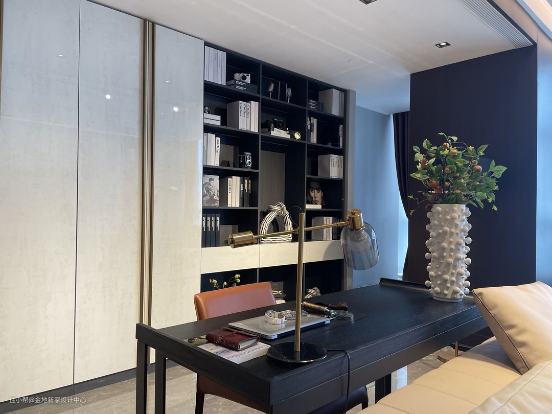 书房和客厅的一体设计,通透大气,家人间的互动也更高效,即使大家在同一个空间下,也能做自己手头的事情,陪伴不远离,自由有余间。
