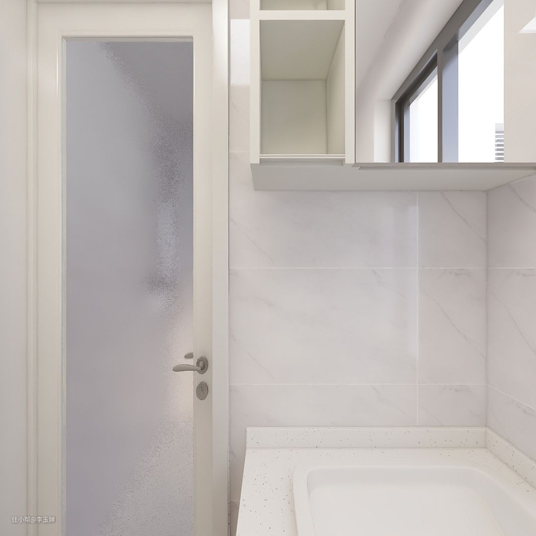 方形的台盆搭配镜柜,防水条,台词台盆,磨砂玻璃门,都是对简单生活的完美诠释。