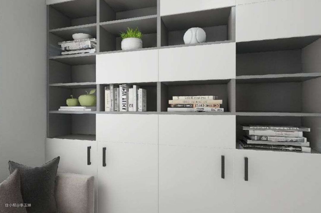 干净清爽没有多余的装饰更符合屋主的审美,收纳柜的不规则挖空设计提升了丰富的层次感,放上一些书籍非常有格调。