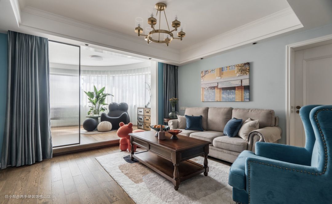【装修背景】 第一次和业主见面时候,设计师就被这对热爱生活的业主夫妻给触动了,因为想要给孩子更好的环境与陪伴,业主夫妻决定卖掉清远的别墅,置换成佛山三居室。居住空间由大到小,不得不说有些不舍的情绪在其中,虽然居住面积变小,但爱旅游的小夫妻依然希望,能在家中寻得一处静谧,可以拥有“在路上”的慢心情。深知业主追求品质生活,想要的繁华深处“家”的感觉,以女主喜欢海边“仙本那”为主题,开始了这一次寻找家中“诗和远方”的设计之旅。
