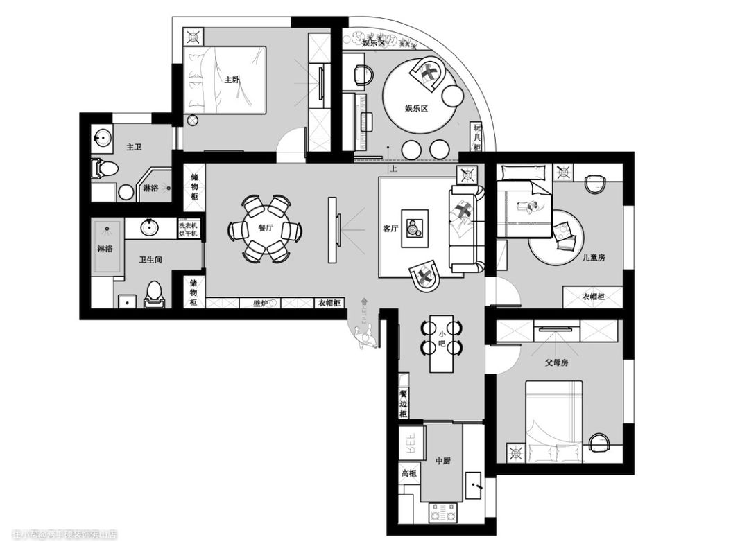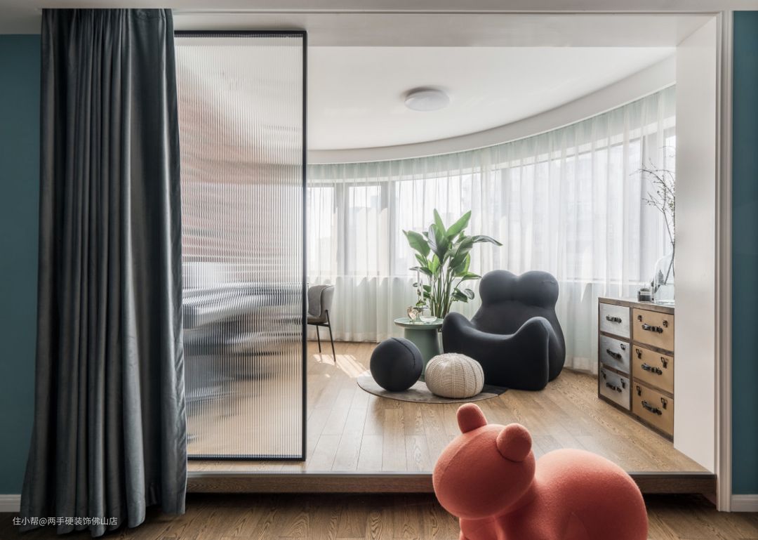 弧形阳台通过抬高15CM的高度,集阅读、学习、儿童娱乐为一体,关上门,无论是宝宝还是大人,都可以拥有一个自己独处的学习空间。