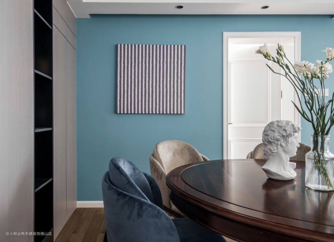 和仙本那海一般的颜色 配上男主喜爱的条纹画 让整个餐厅空间充满了活力。
