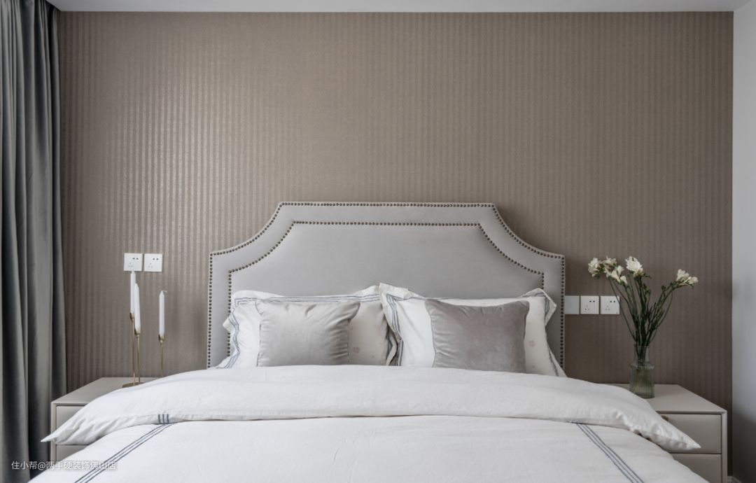 次卧房间 选了条纹墙纸 配上白色四件套 满满的温馨感。