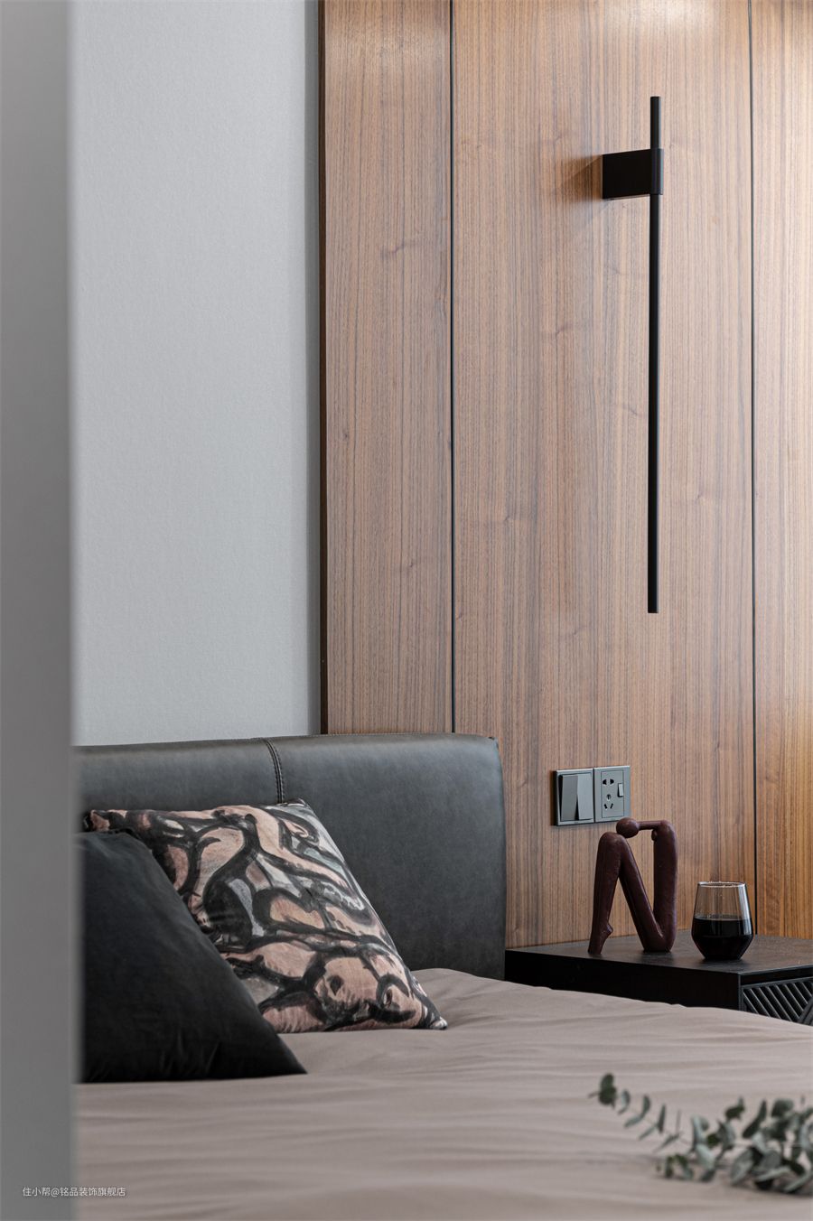 床和床头柜都选择了百搭的黑色,与整体中性风的色彩空间更搭。