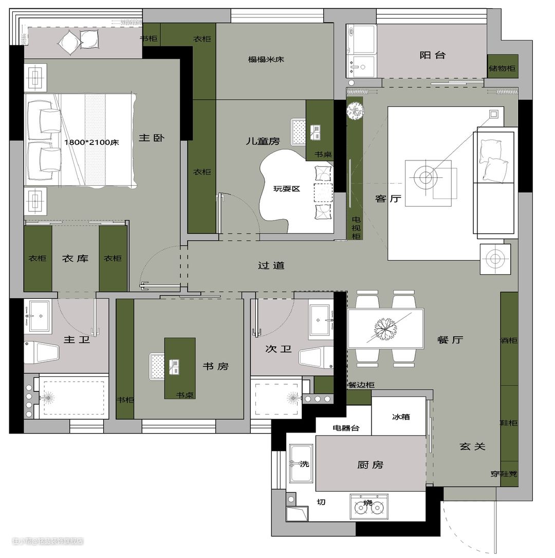 【前言】 素雅而简洁的黑白灰,是打造简约家居永恒的主旋律,它们总能搭配出一种莫名的高级感。在内敛随性的色调里,融入时尚感的墨绿色、古朴的胡桃木,让整个空间在现代时尚的基调上,有一些亮点。