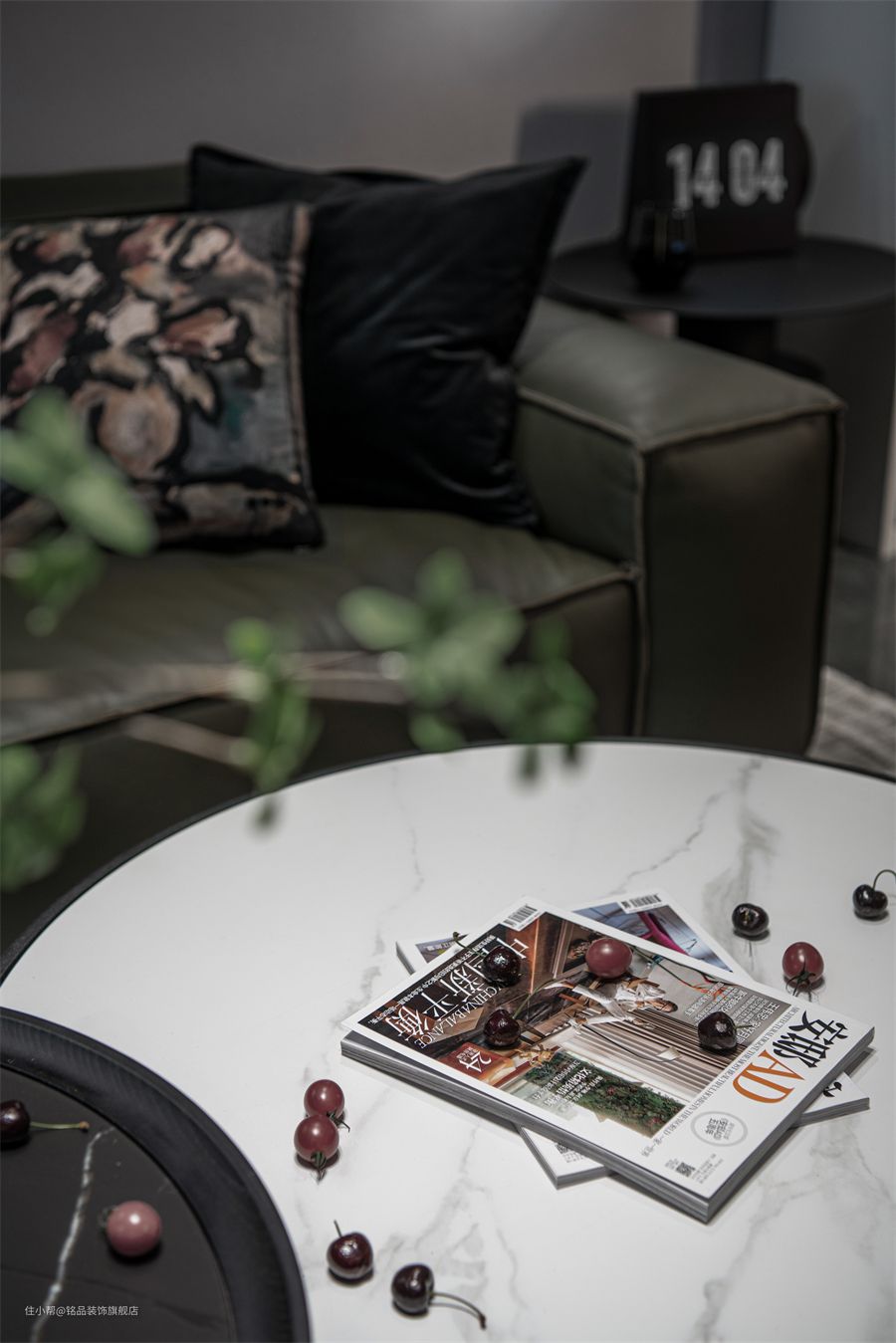 沙发是墨绿色豆腐块沙发,低靠背设计+高回弹海绵座包,尽享舒适坐感。茶几选择了黑白双拼,无论是尺寸还是色彩,都更有亮点。