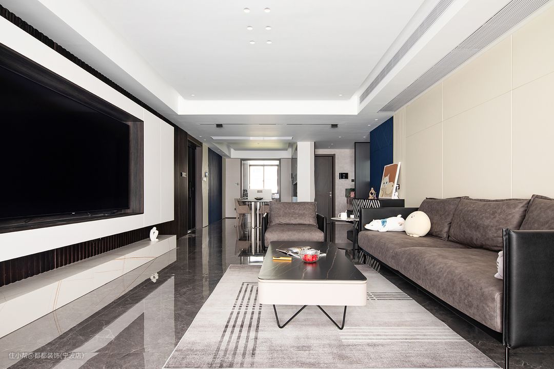 客厅中硬装多用米色和黑色,简洁干净,让人由衷地感受到优雅和品质的分量。