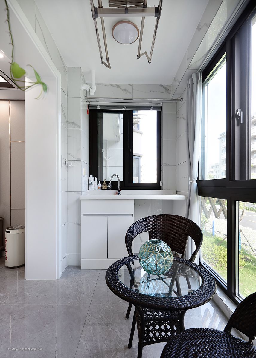 阳台被打造成一个既能满足晾晒功能,又能满足惬意舒适的休闲区。