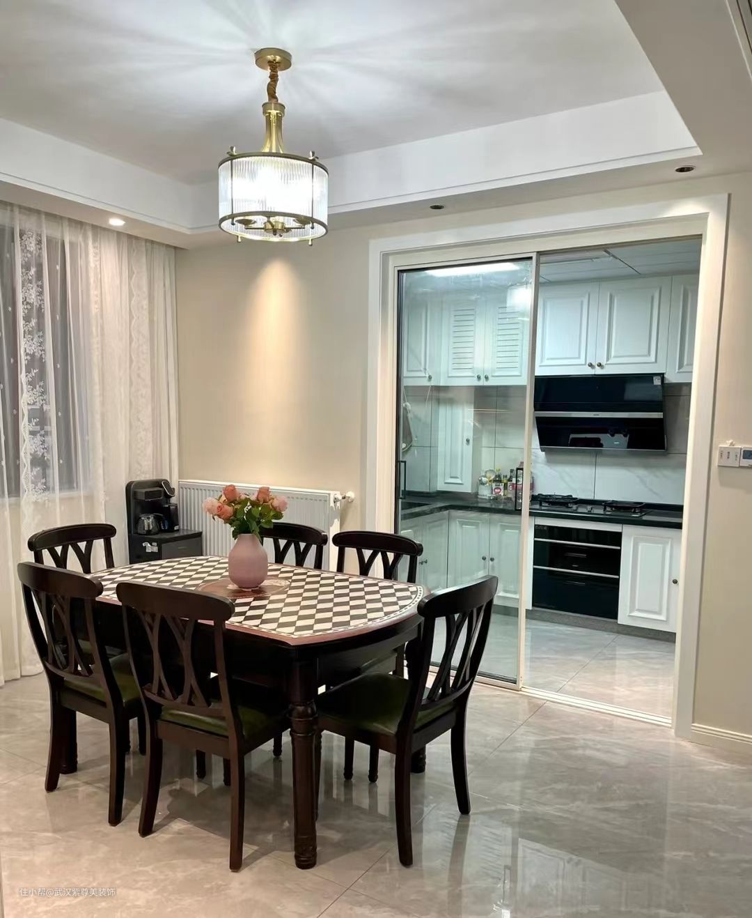 厨房是一个装下天下美食的神秘空间,身心疲惫时美食是最好的安慰剂!所以家居装修中,厨房空间怎么设计就显得尤为重要。一个好的厨房绝对可以让人身心愉悦,提高幸福感! 没有做开放式厨房,考虑到油烟问题,白色柜门黑色台面搭配,简约又大气