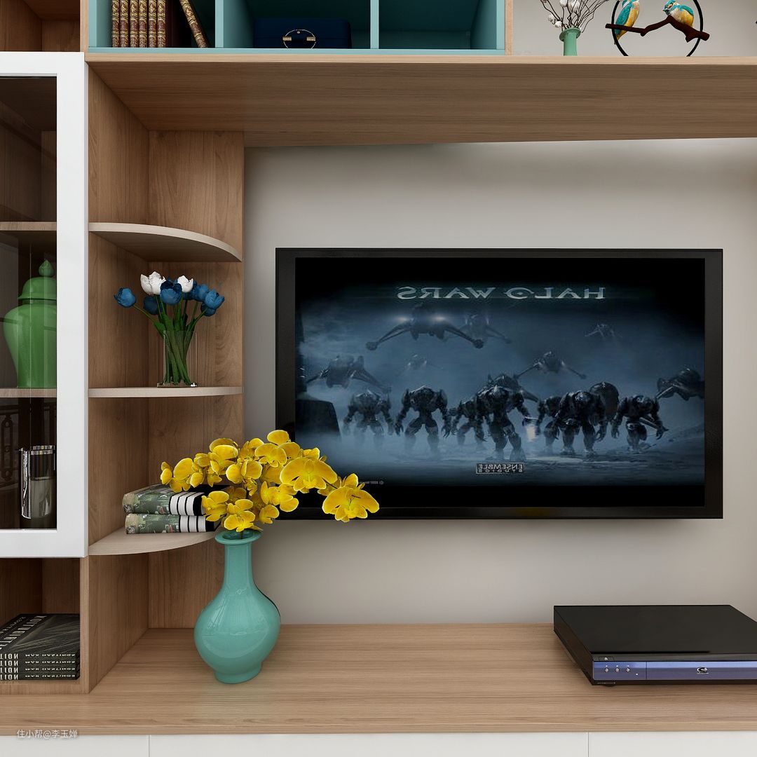 南北通透,采光、通风效果都是相当好的,电视背景墙纯白打底,打造包围式电视柜,电视嵌入其中,整体简洁大方。