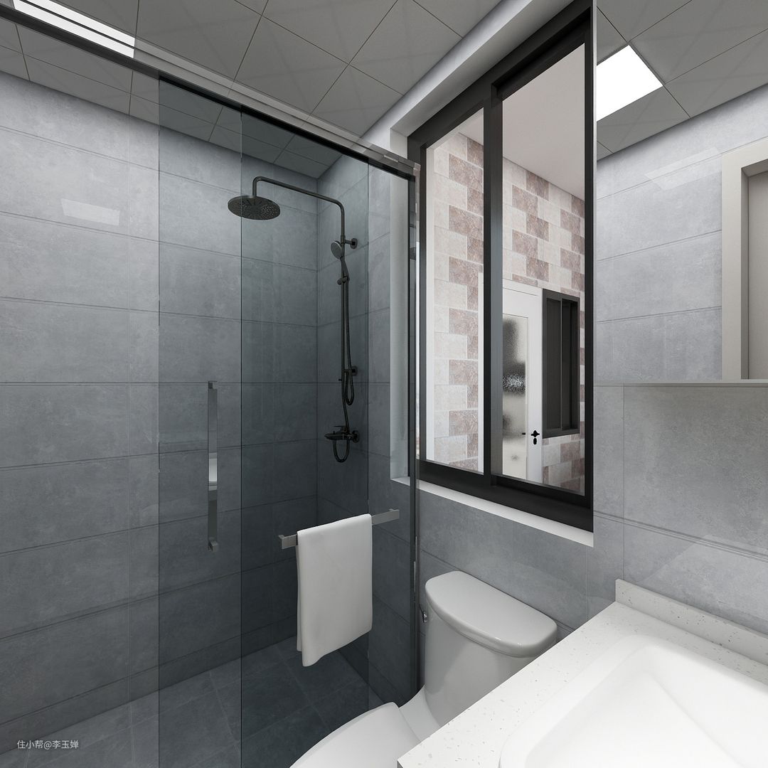 灰色的卫生间给人一种岩石的冰冷质感,适合这种长期保持潮湿状态的空间,尽量选用通透简单的卫浴设计。