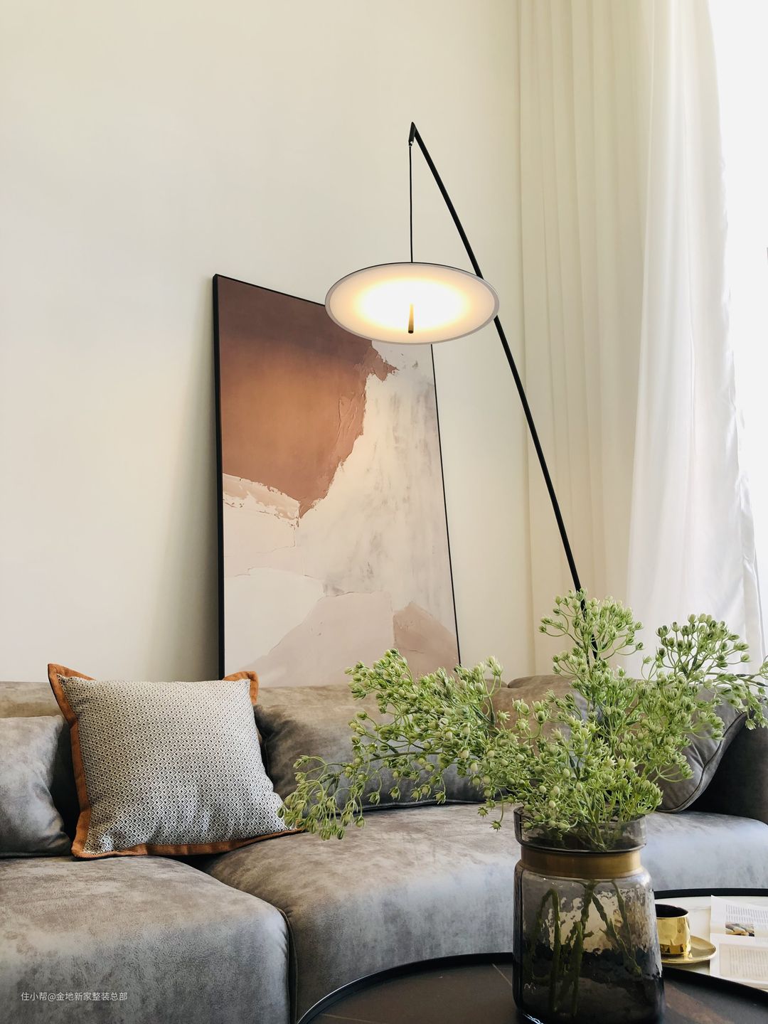 落地灯+挂画+质感沙发,这个氛围感,很难不心动吧?
