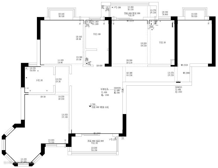 户型分析 原住宅结构较好,无户型缺陷,设计师未做户型改造,只在室内的空间利用上大花心思。如敲掉原阳台与客厅隔断门,将阳台纳入客厅空间,并让与餐厨空间相连的生活阳台设计成洗衣柜,提高空间的利用率。