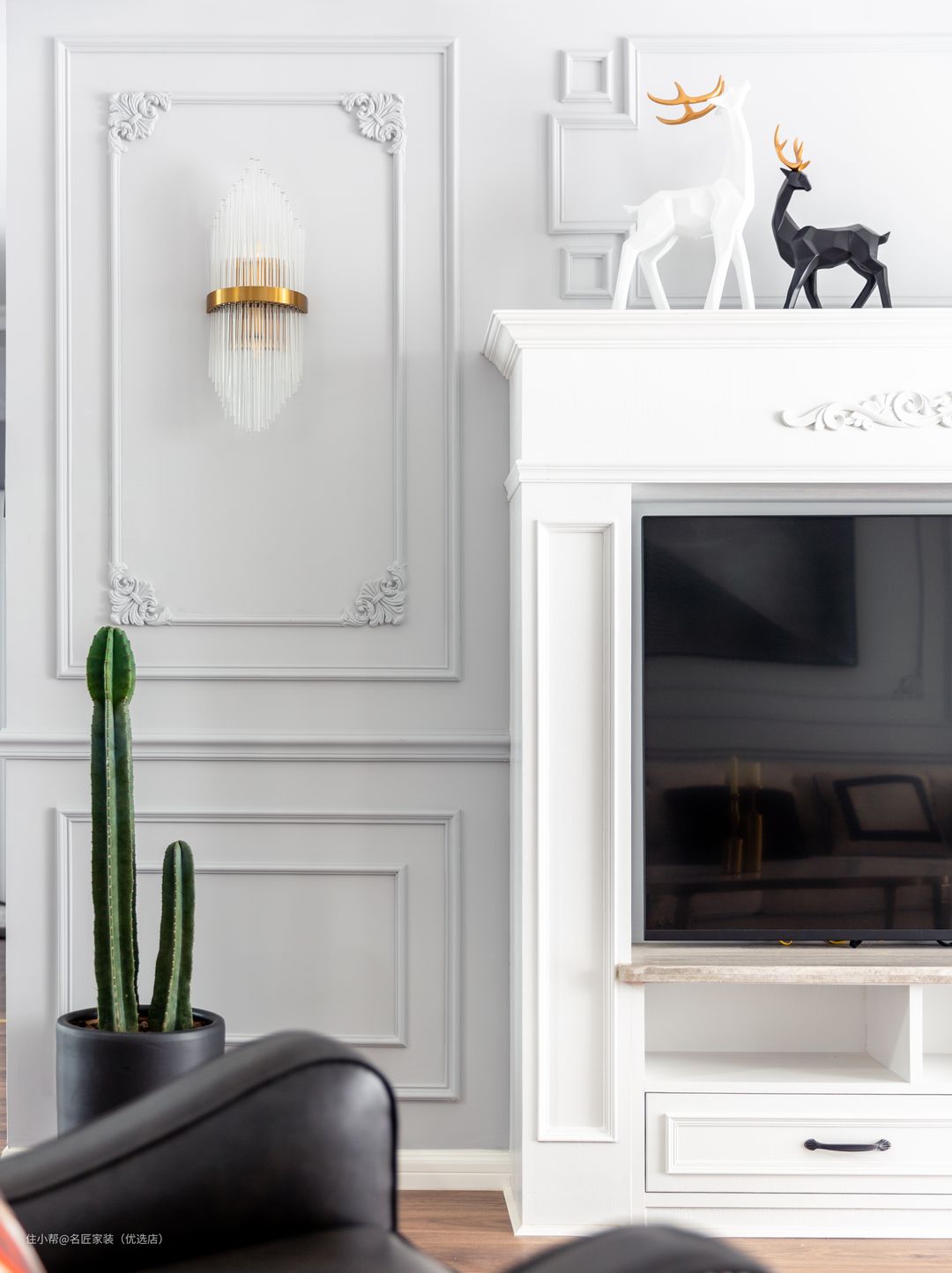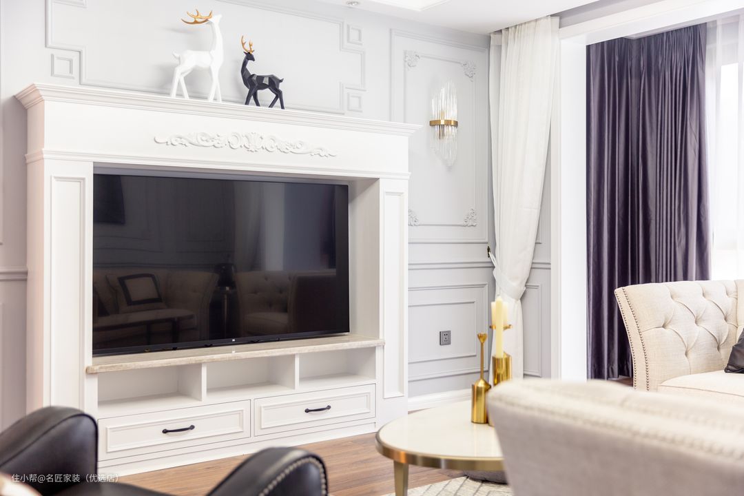 细致的法式雕花 以层层线条构画 与壁炉搭配 饰物精巧细致 营造出一副岁月静好的惬意氛围