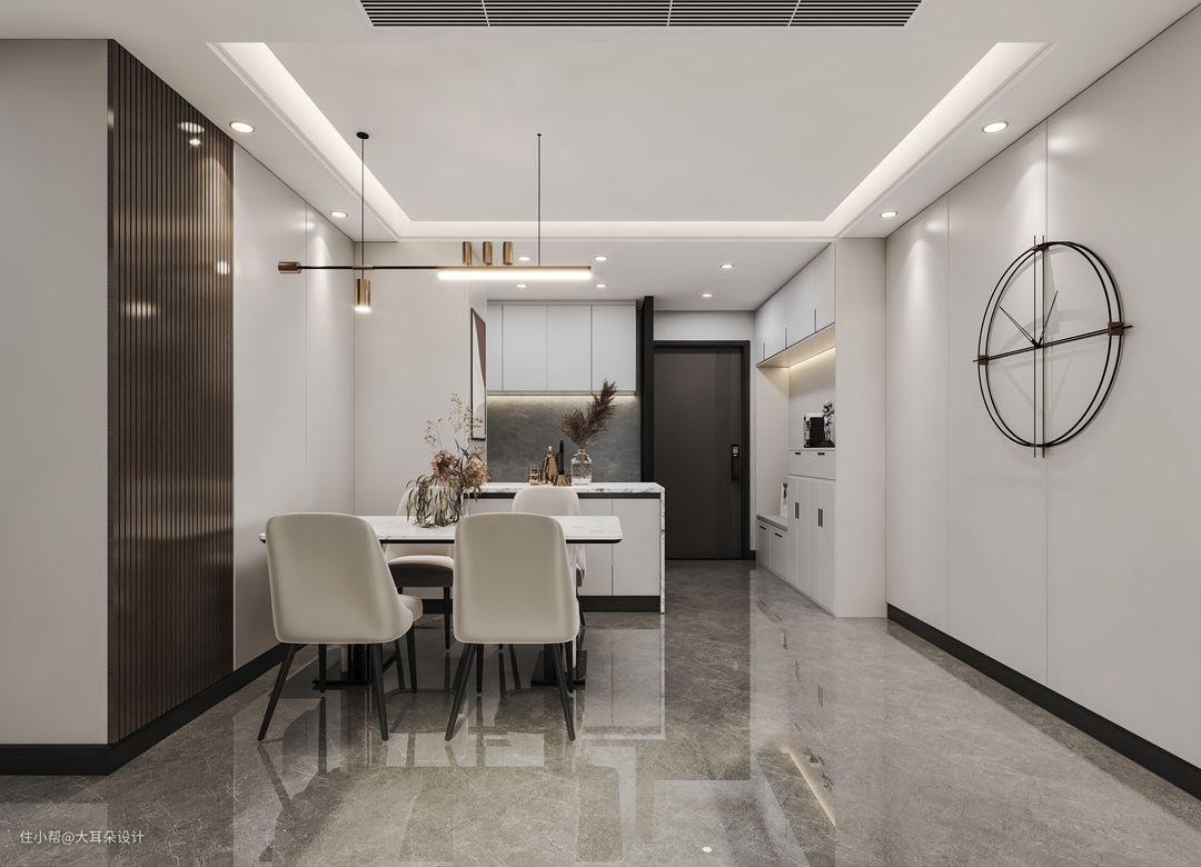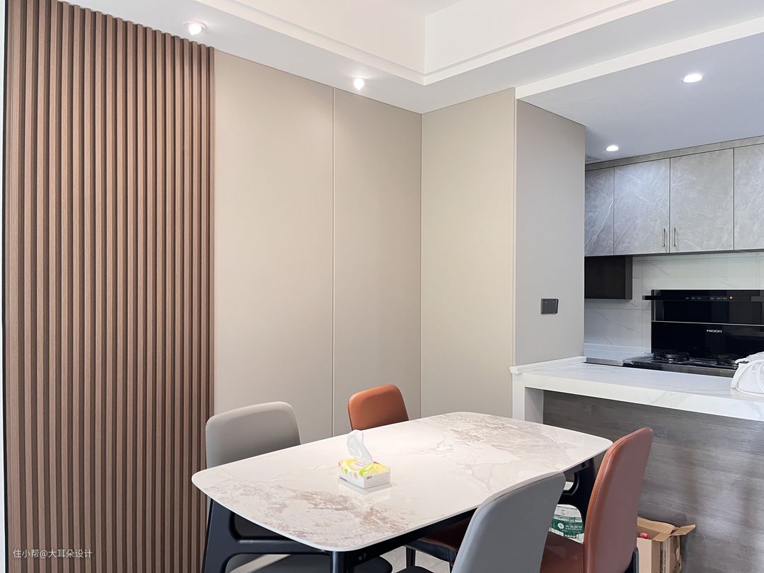 原有餐厅空间非常小,与厨房吧台连接,增加餐厅与厨房的互动性。