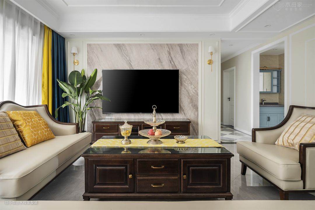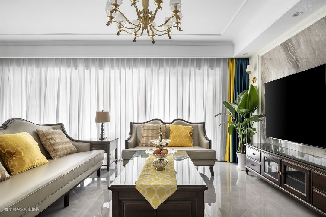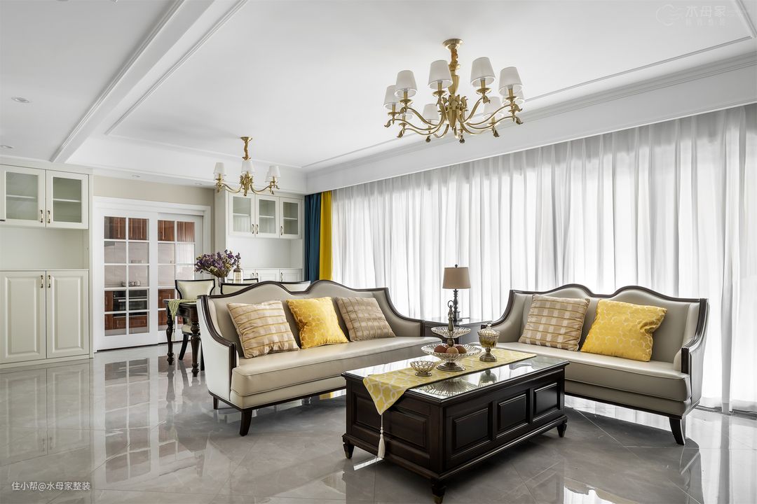 客厅以明亮、轻快的淡黄色+米白色调为主,给家人带来温馨、愉悦的居住感受,营造和谐的家庭氛围。