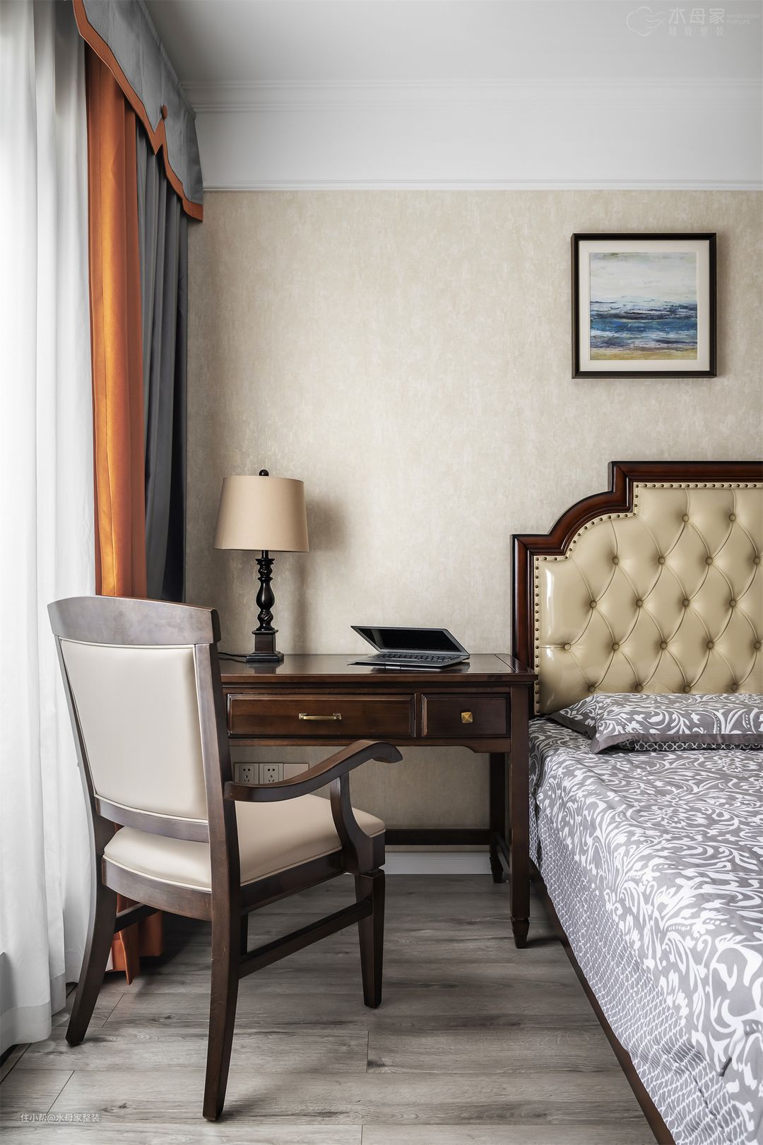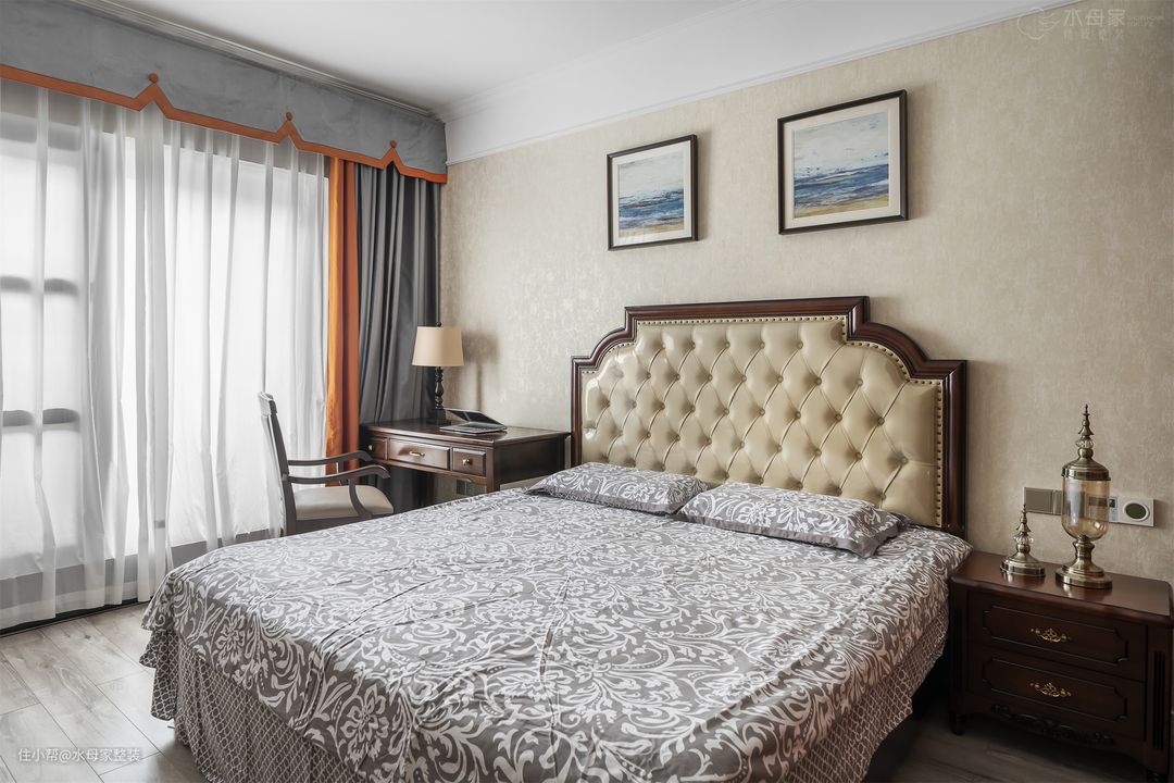 主卧继续延时欧式风格中较为浓重的色彩了,实木家具增加浓厚的欧式文化氛围。