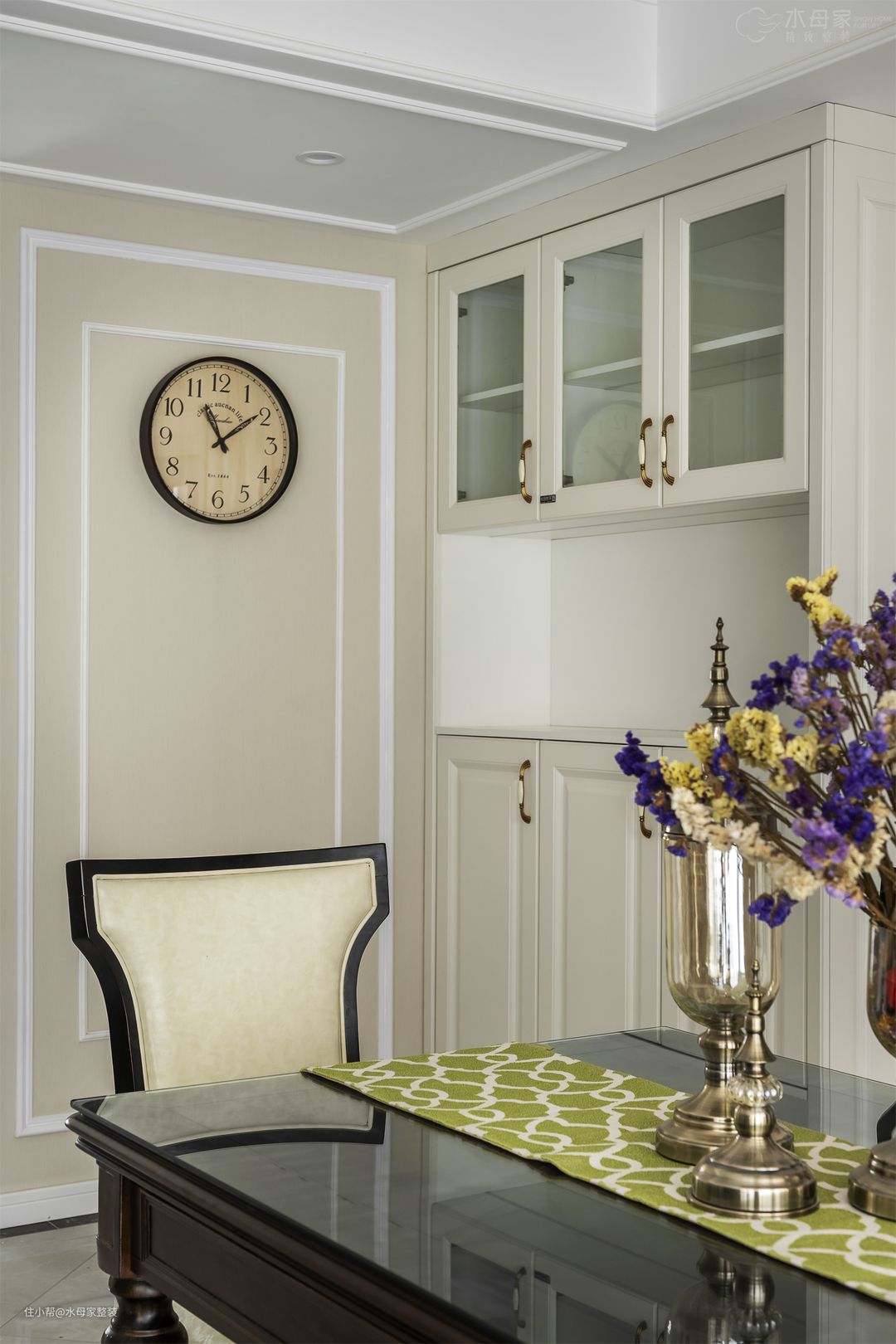 做旧的干花和墙上的挂钟,让欧式风格变得更加丰满。